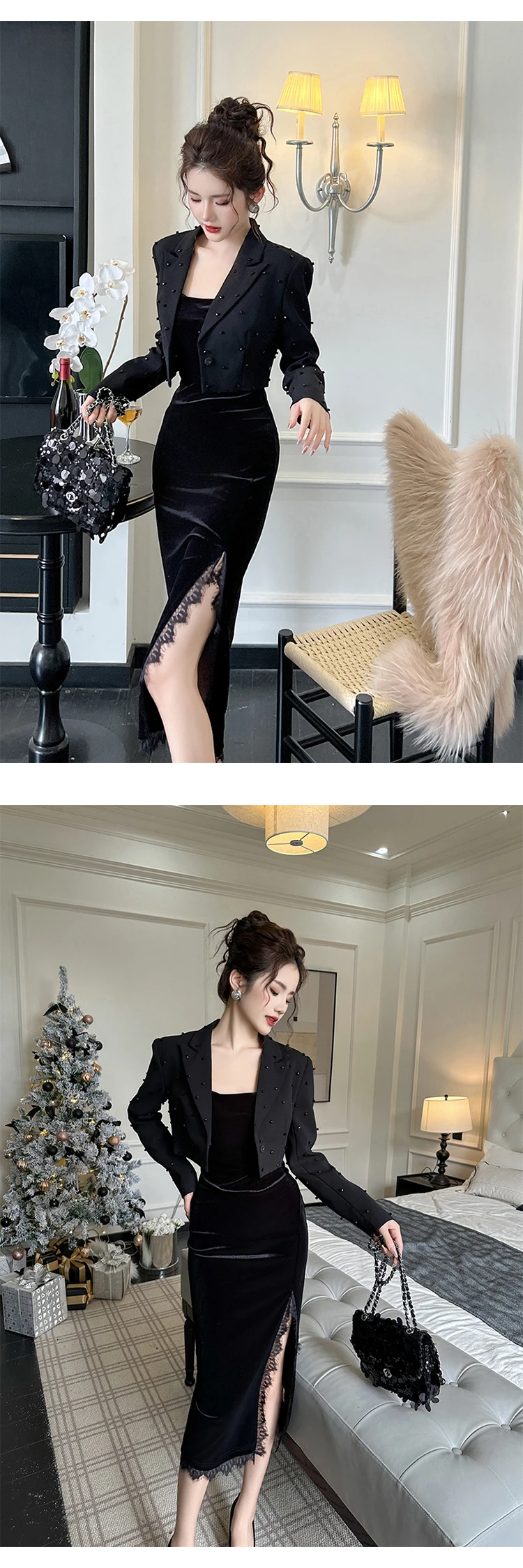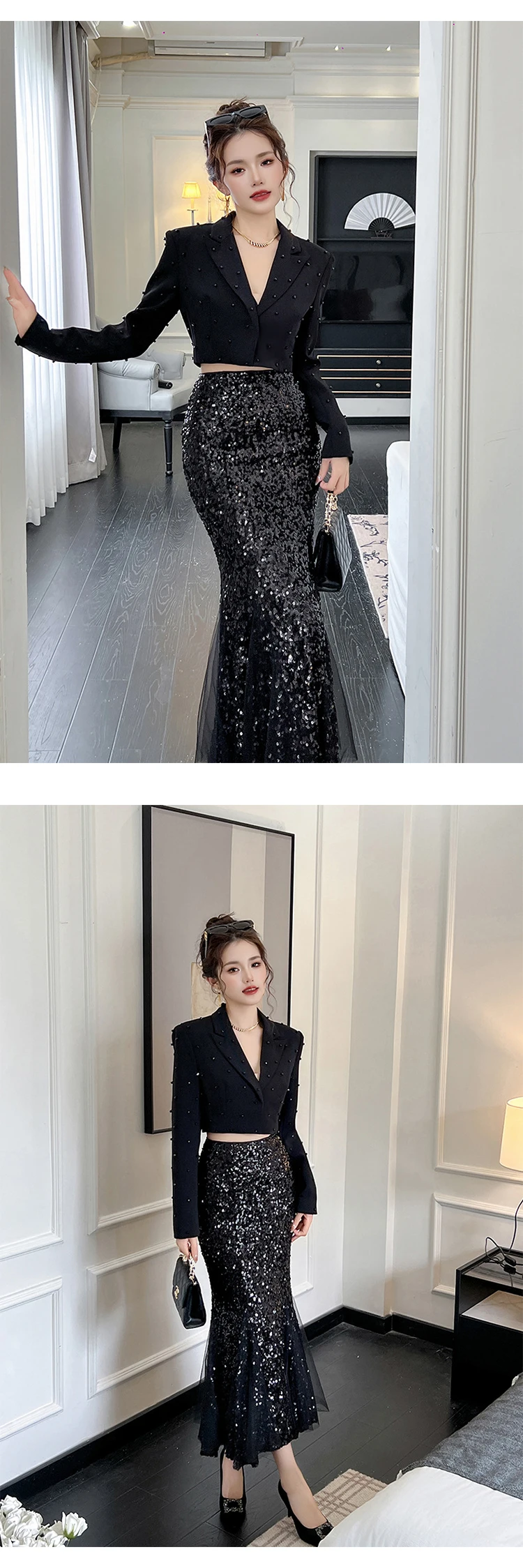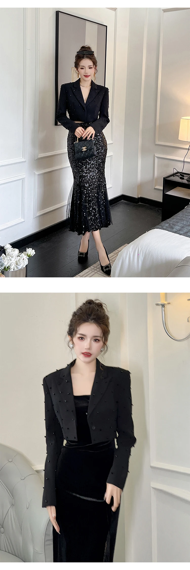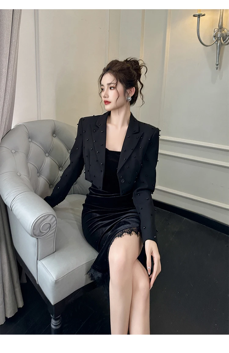 Fashion Chic Women’s Blazer Office Lady Bright Black Long Sleeve Short Casual Party Coat Ladies Outerwear Stylish Cropped Tops
