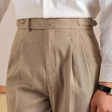 Naples High Waist Linen Suit Pants Men Breathable Straight Leg Office Trousers Men Pantalon Costume Homme Men’s Social Trousers