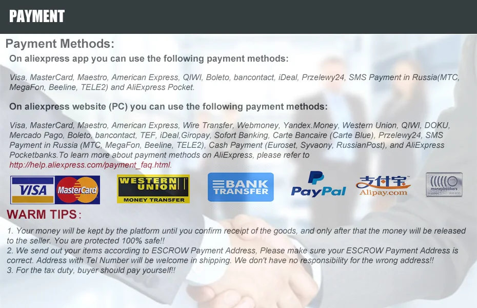 Payment issues: When you do not know how to pay, or pay encounter problems, please visit: //activities.aliexpress.com/adcms/help-aliexpress-com/pay_order.php