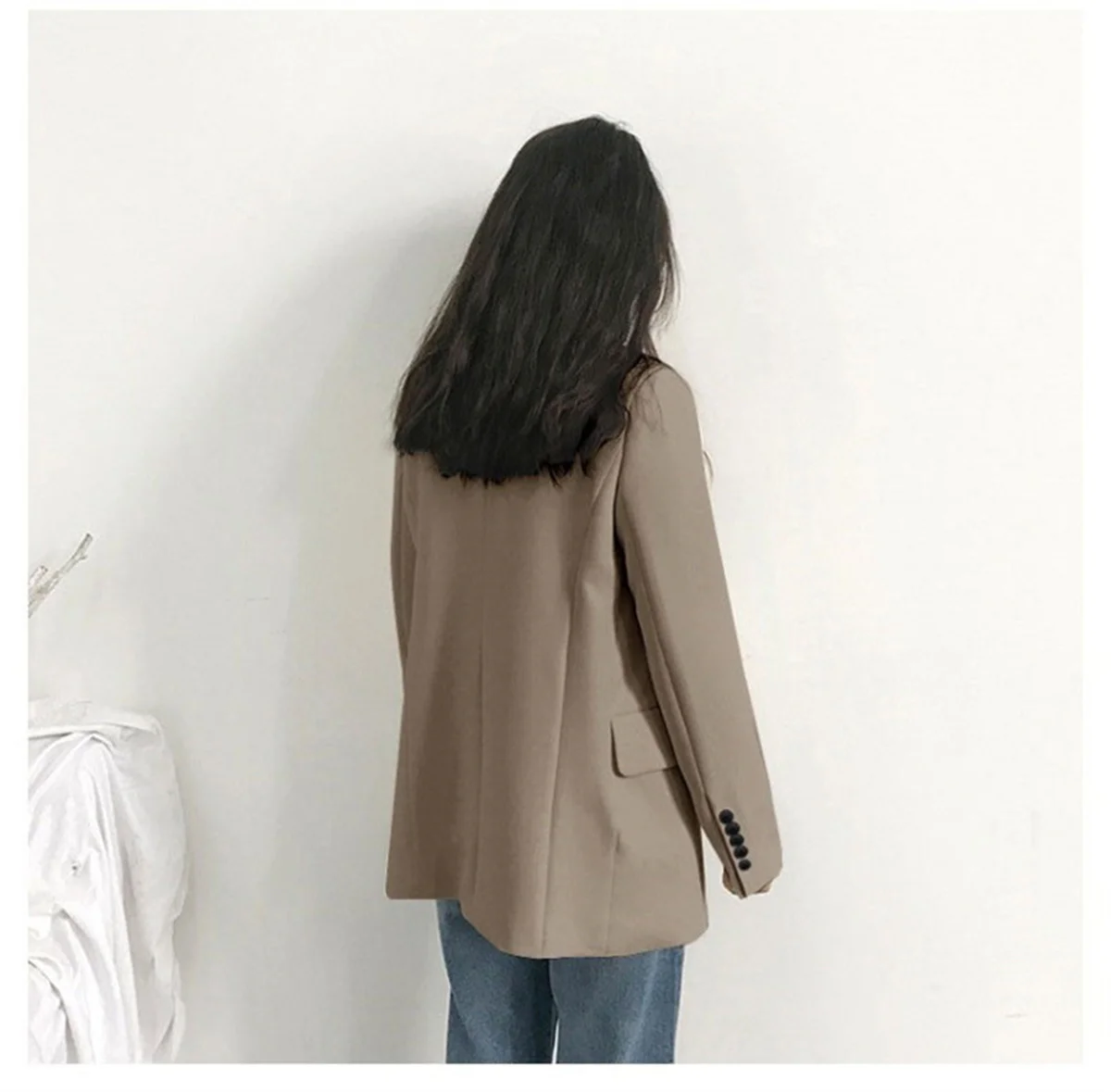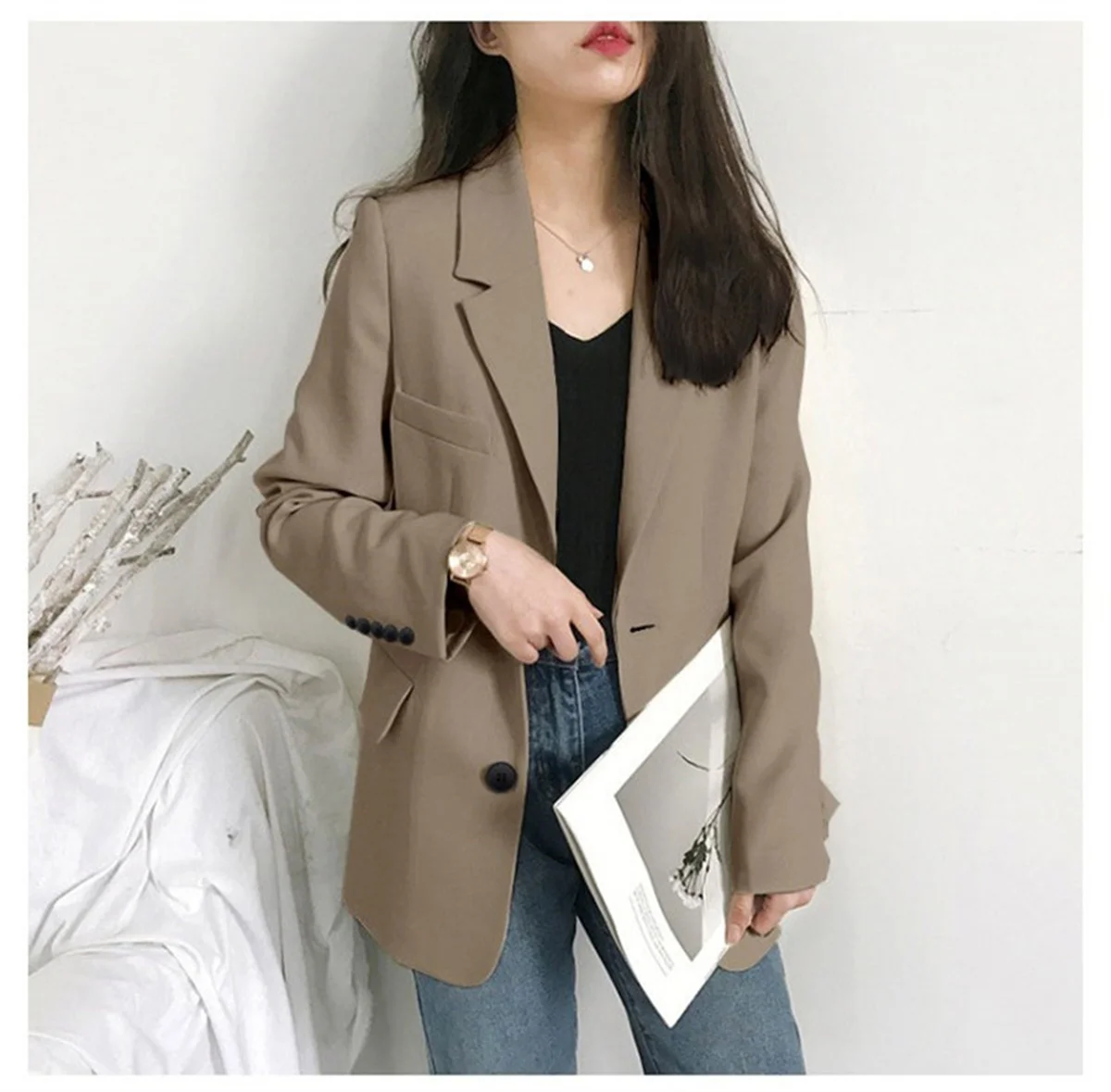 Fashion Office Lady Blazer Women Autumn Spring Single Breasted Solid Lapel Coats Korean Casual Outfit Coats Loose Street Tops