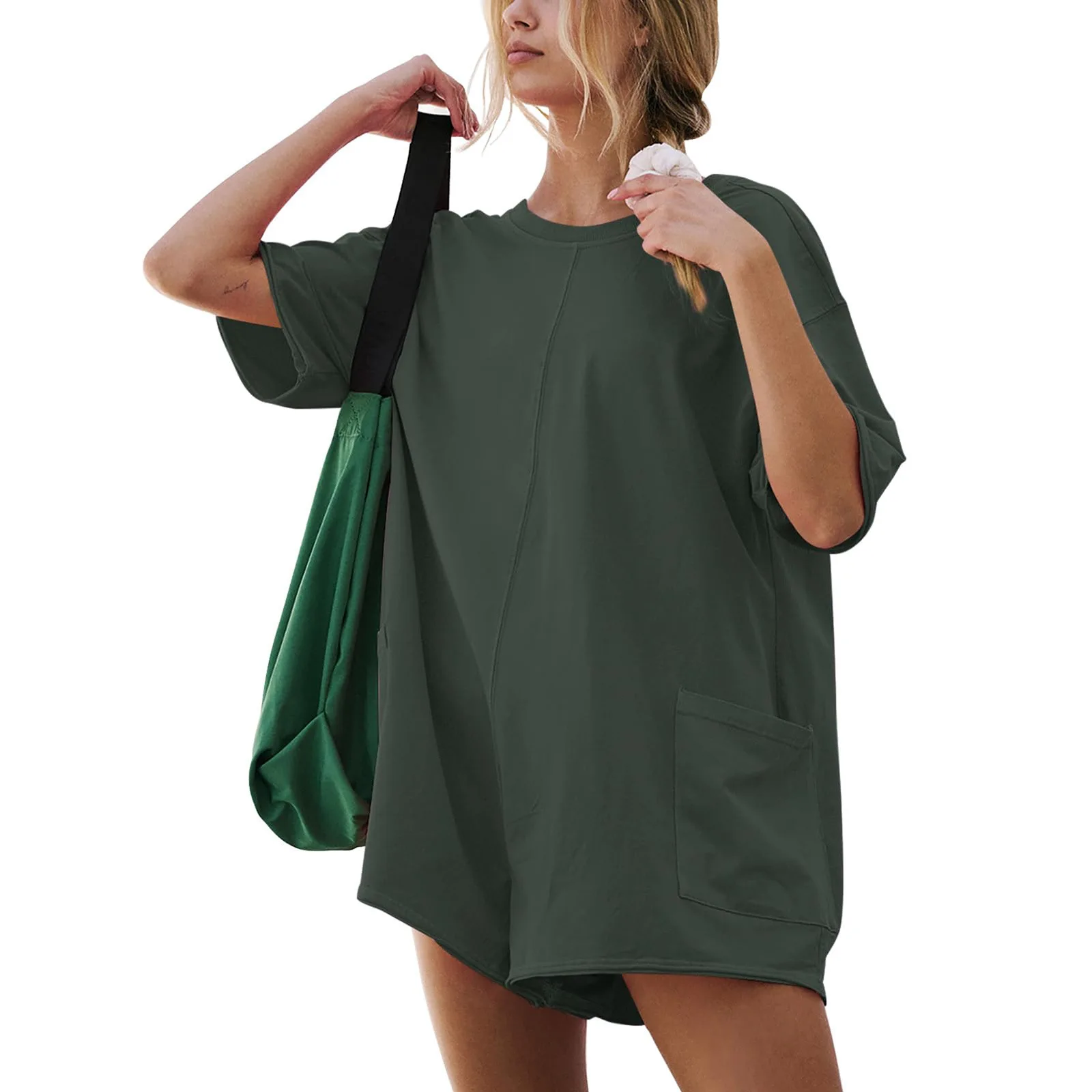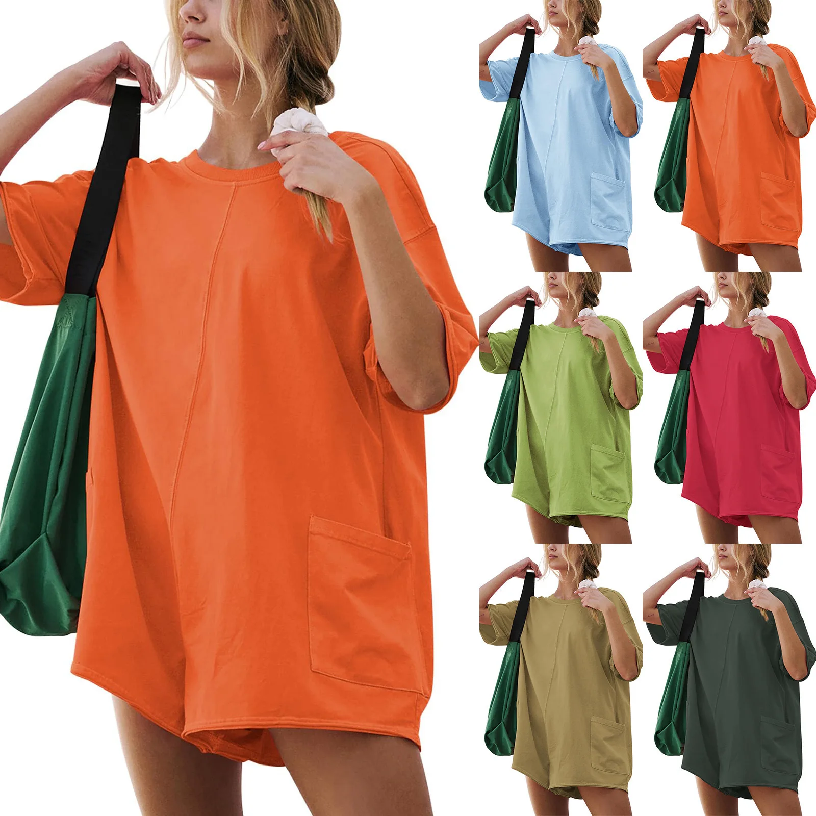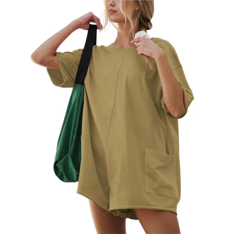 Fashion Solid Short Jumpsuit Sportswear Pocket Design Women’s Short Sleeved Jumpsuits New Summer Backless Loose Casual Romper