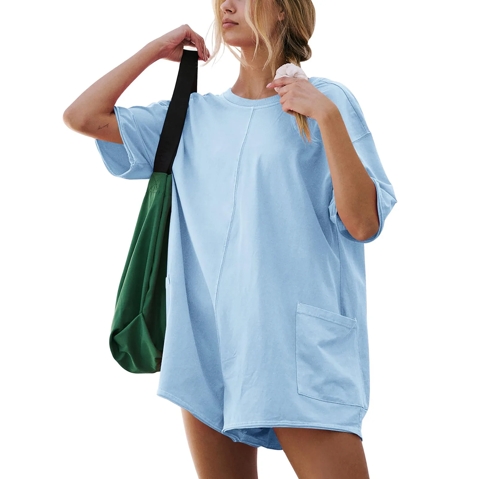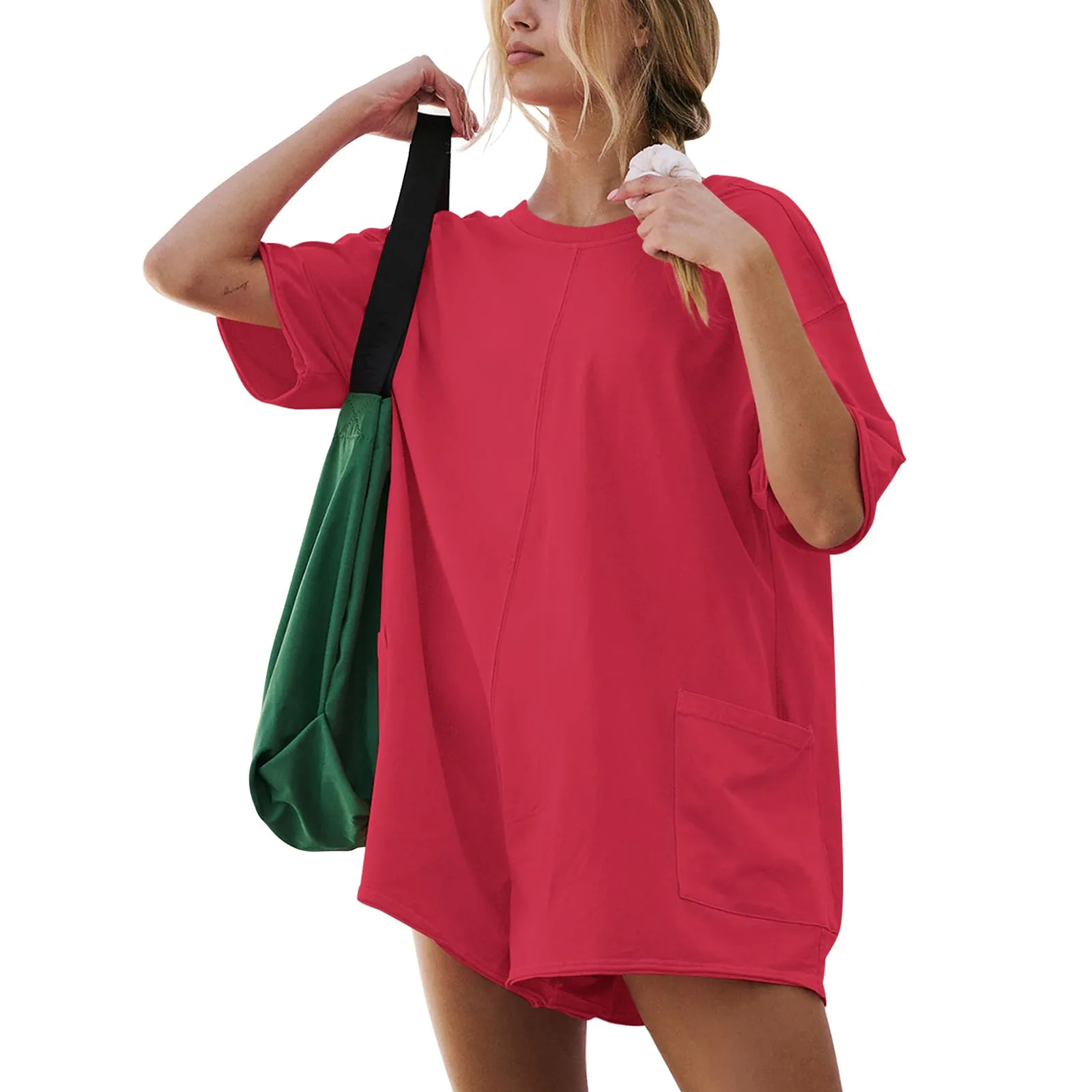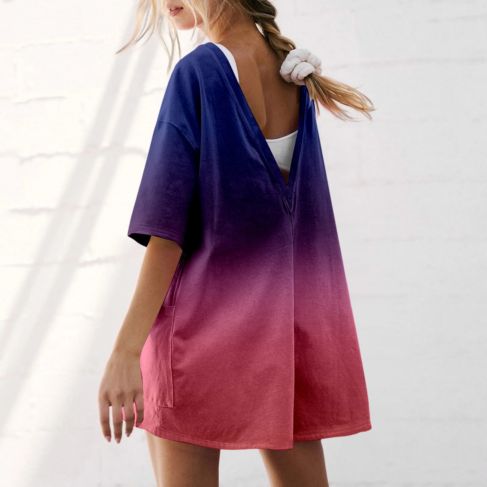 Fashion Solid Short Jumpsuit Sportswear Pocket Design Women’s Short Sleeved Jumpsuits New Summer Backless Loose Casual Romper