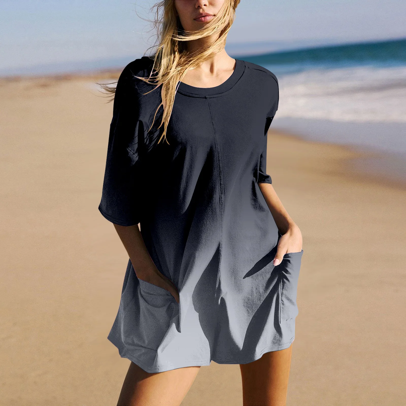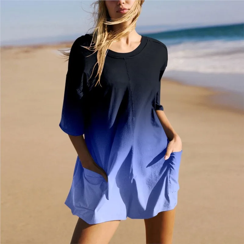 Women’s spring and summer casual loose plus size QUEEN printed round neck long sleeved pocket dress streetwear