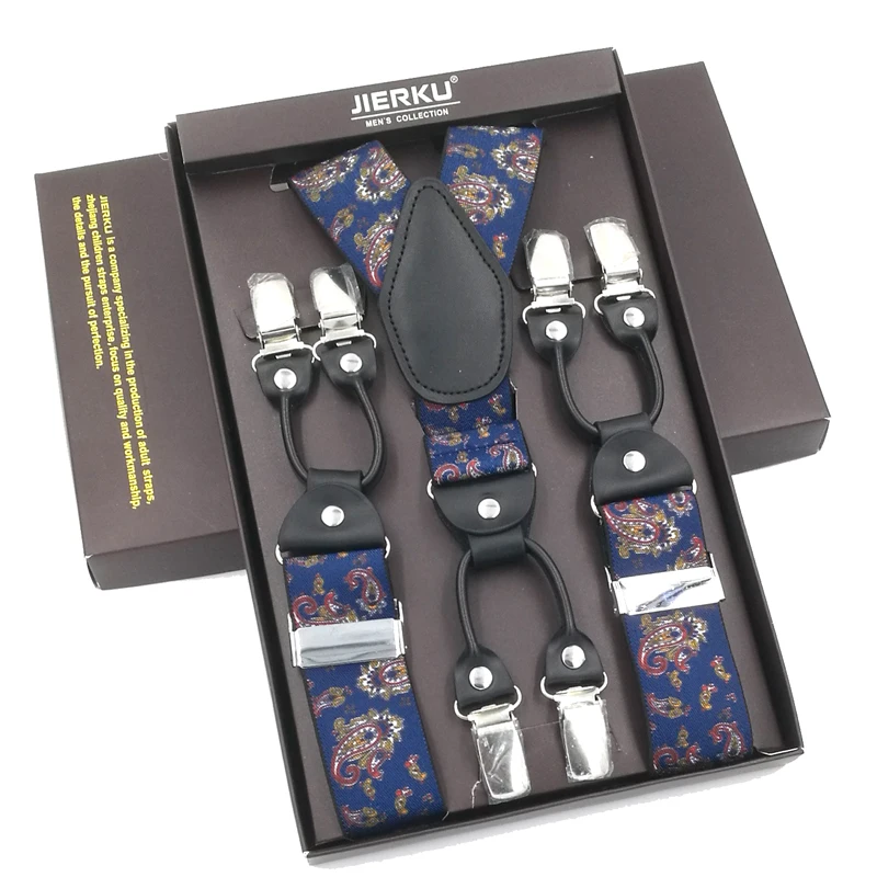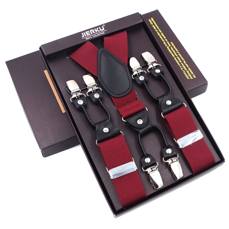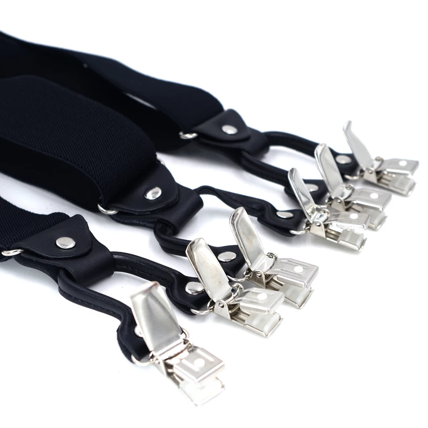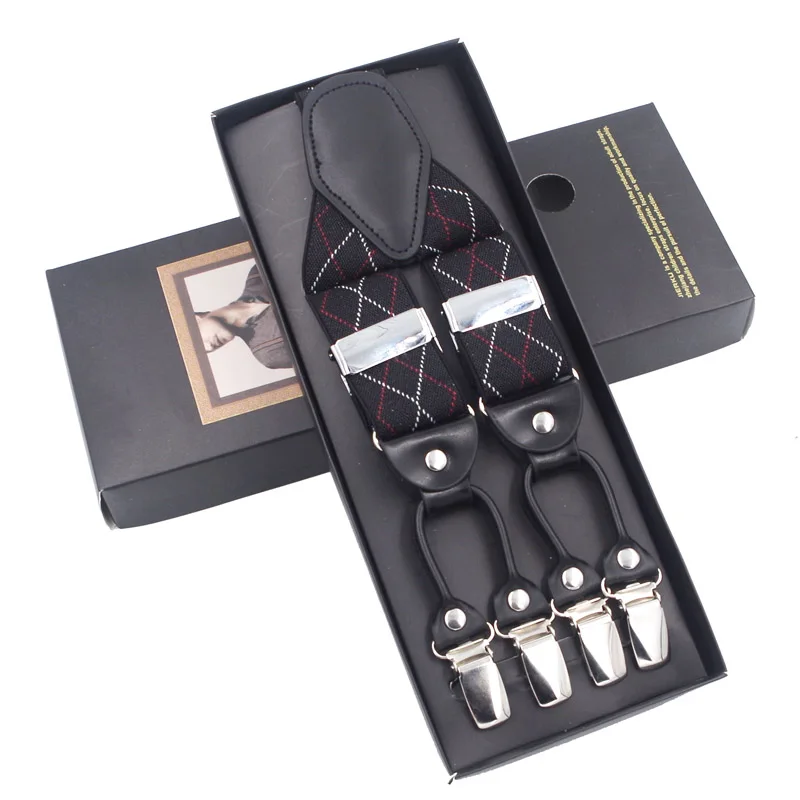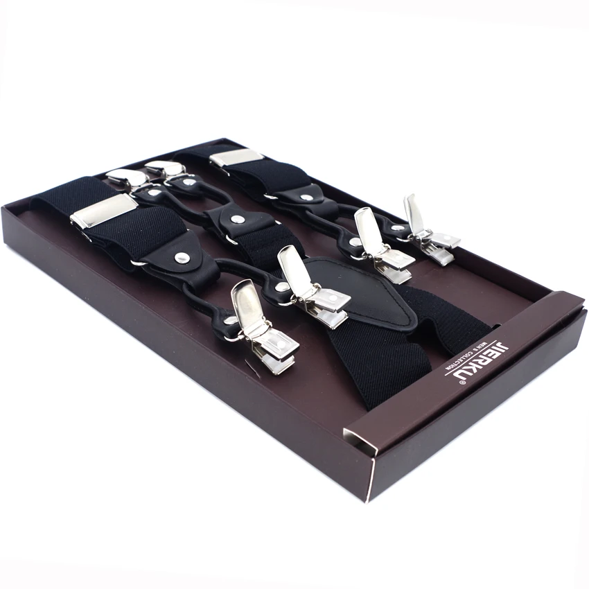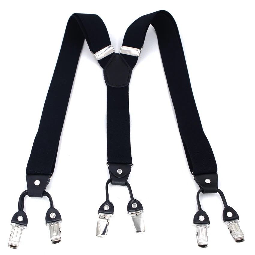 Fashion Suspenders Black leather 6 Clips Braces Vintage Casual Suspensorio Tirante Trousers Strap bretele Father/Husband’s Gift