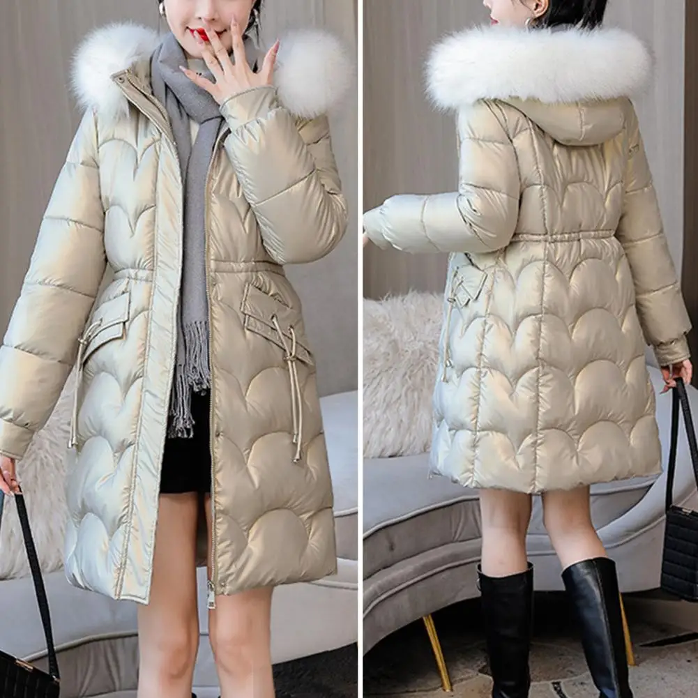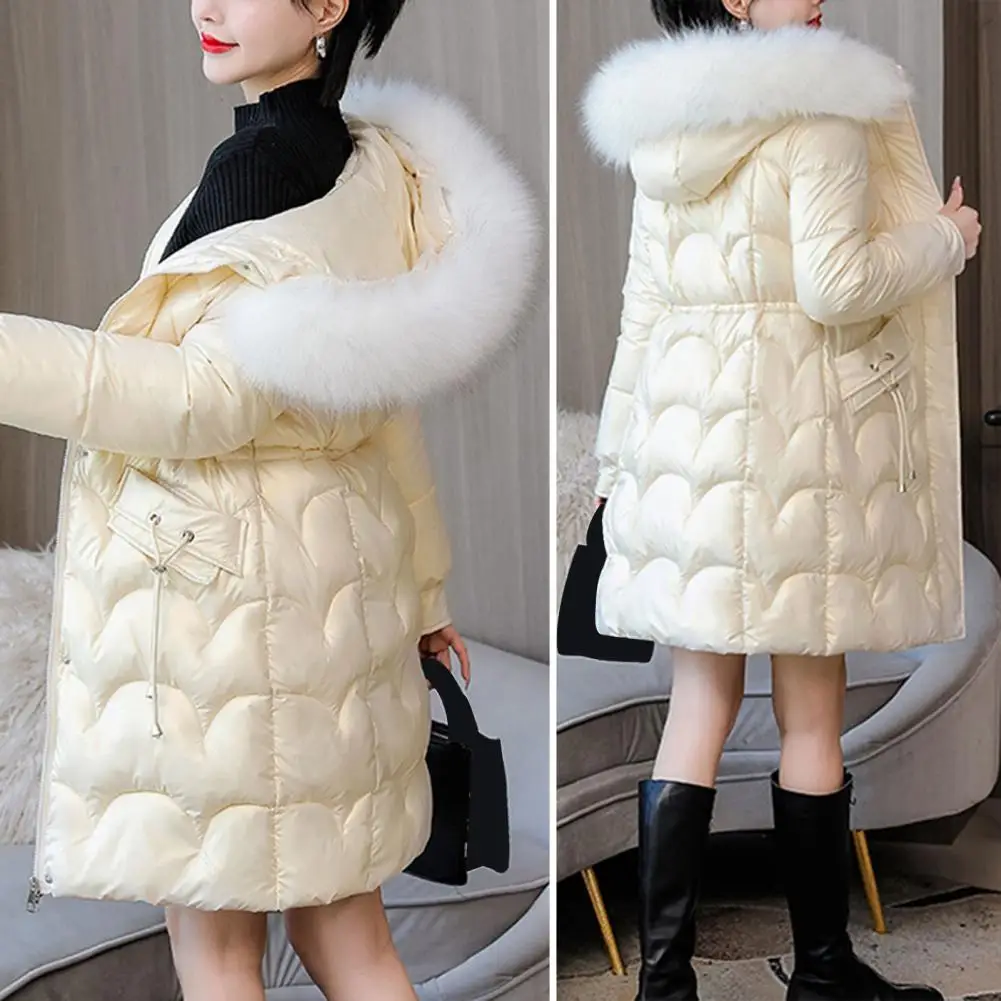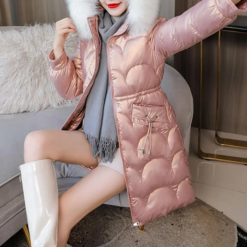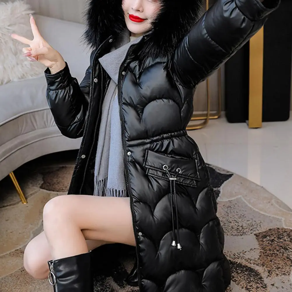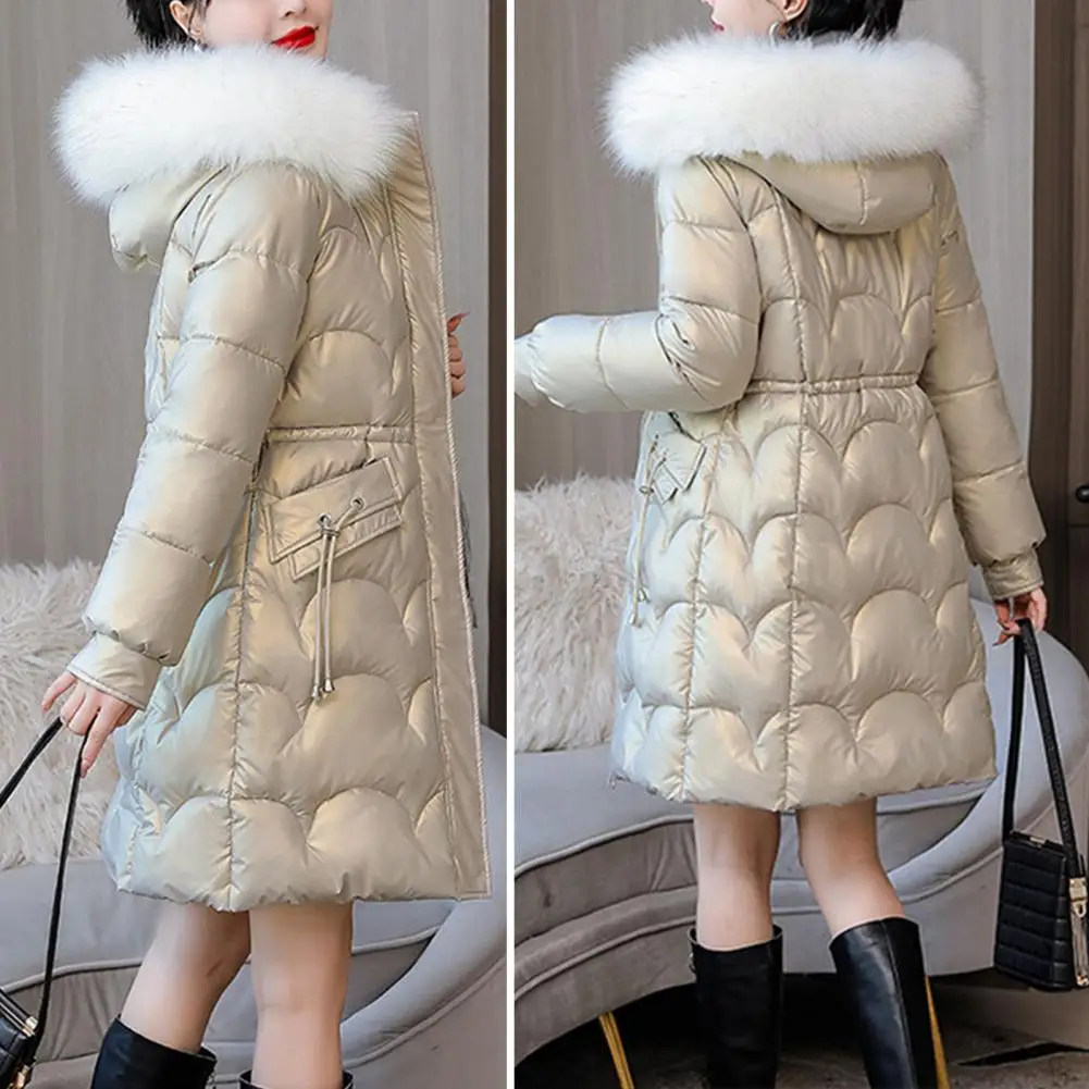 Faux Fur Hooded Women Parkas Super Thickened Padded Quilted Coats Waist Tight Windproof Mid Length Winter Down Coat Cooton Coat