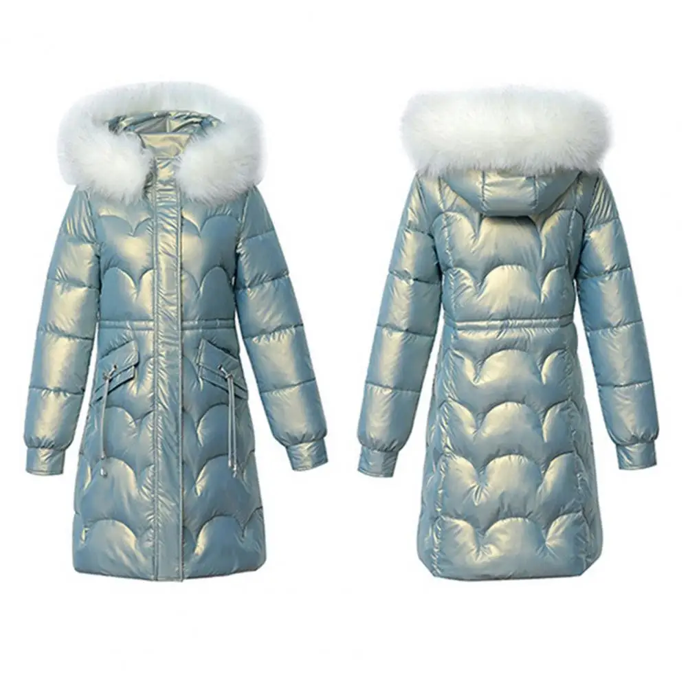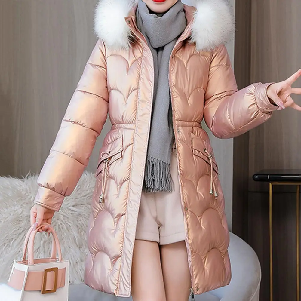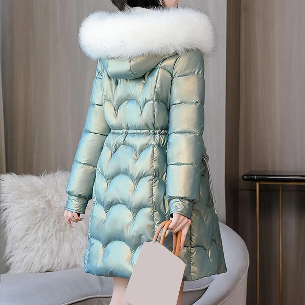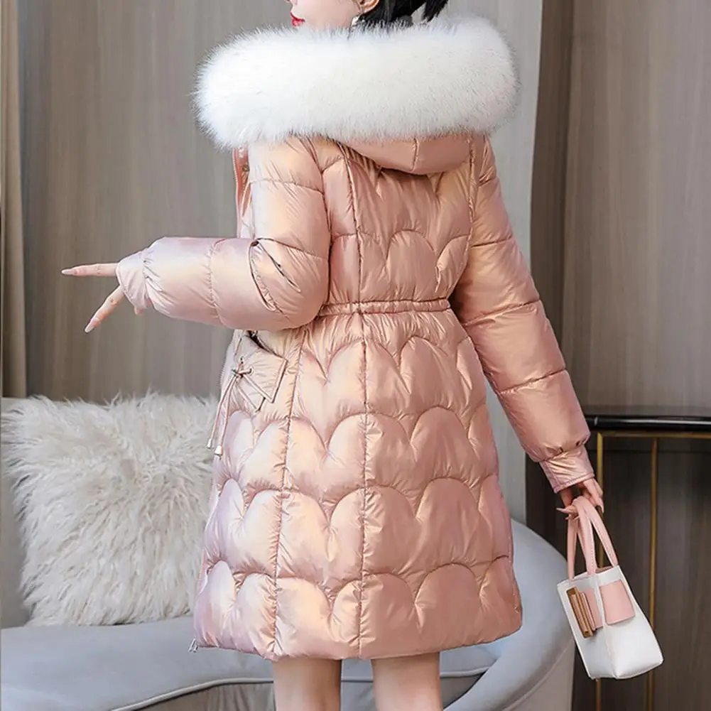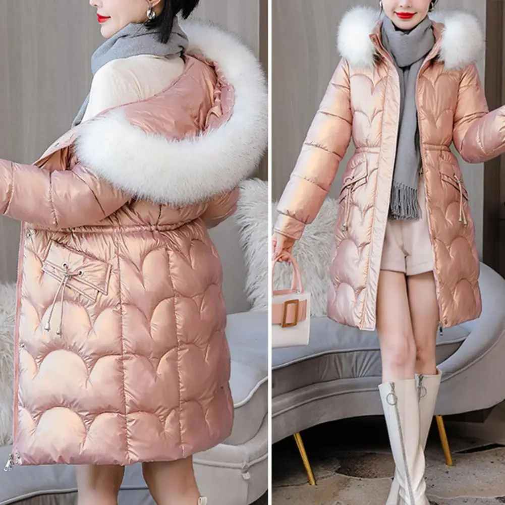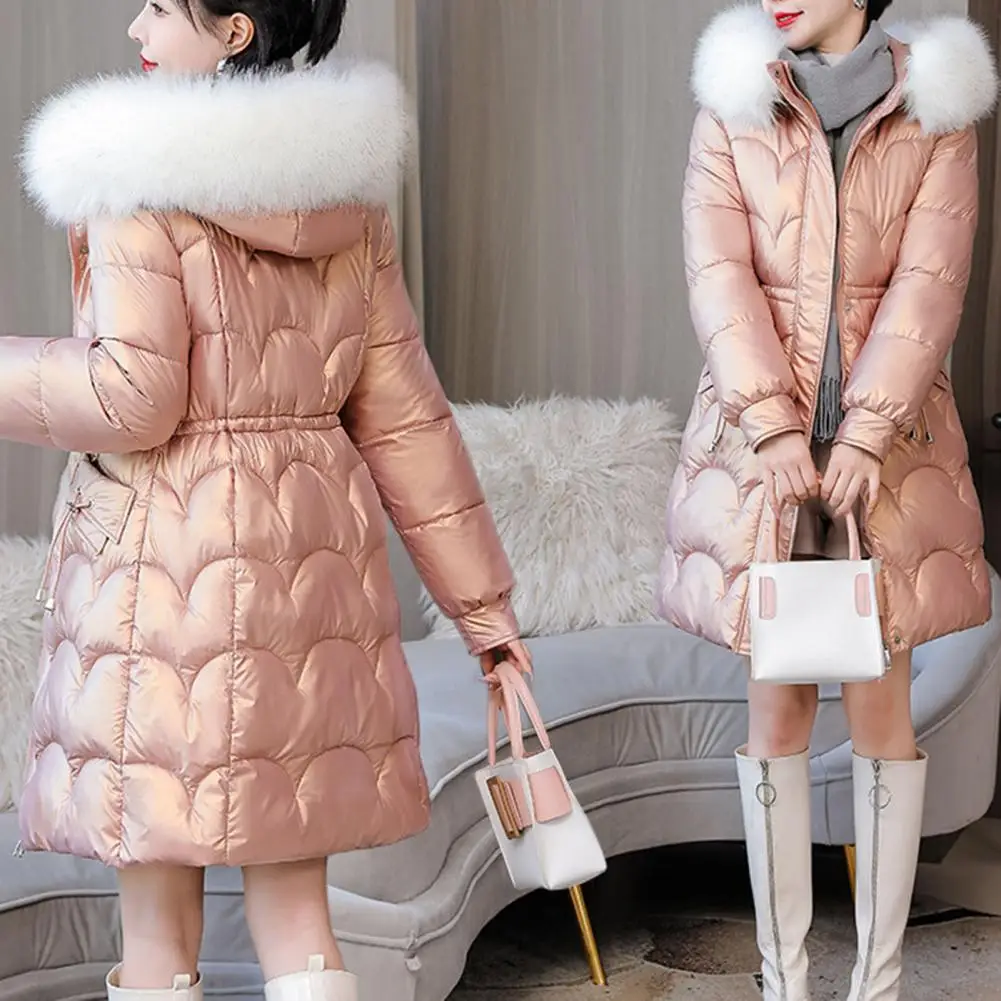 Faux Fur Hooded Women Parkas Super Thickened Padded Quilted Coats Waist Tight Windproof Mid Length Winter Down Coat Cooton Coat