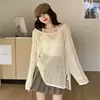 Female Personality Loose Casual Solid Pullovers Women Breathable Hollow Out Lazy Style Japanese Version Sweater Summer