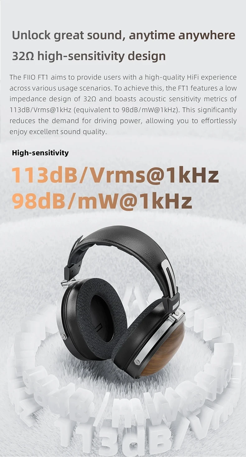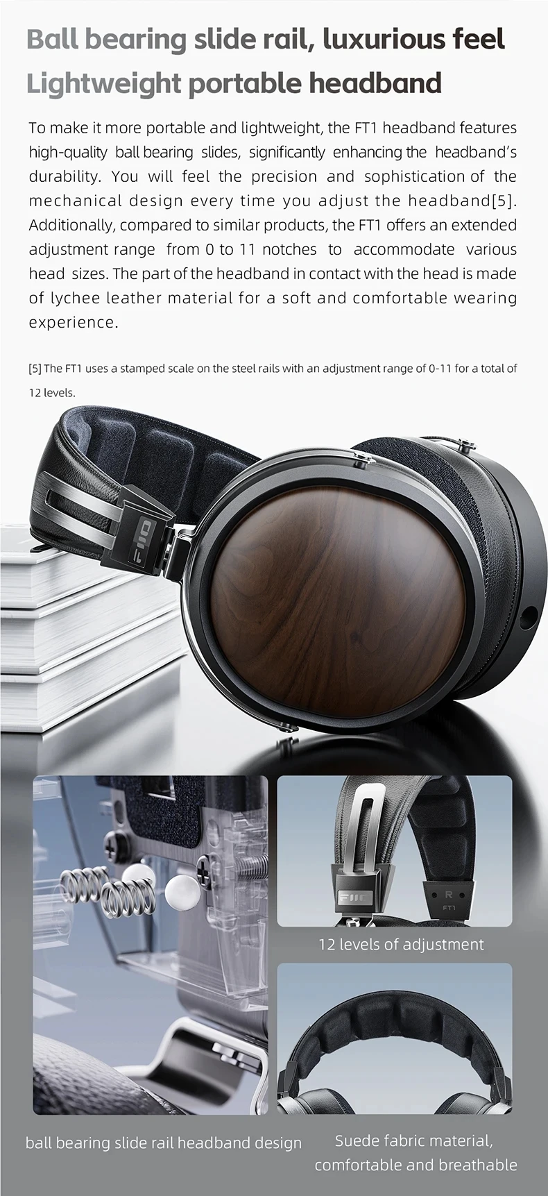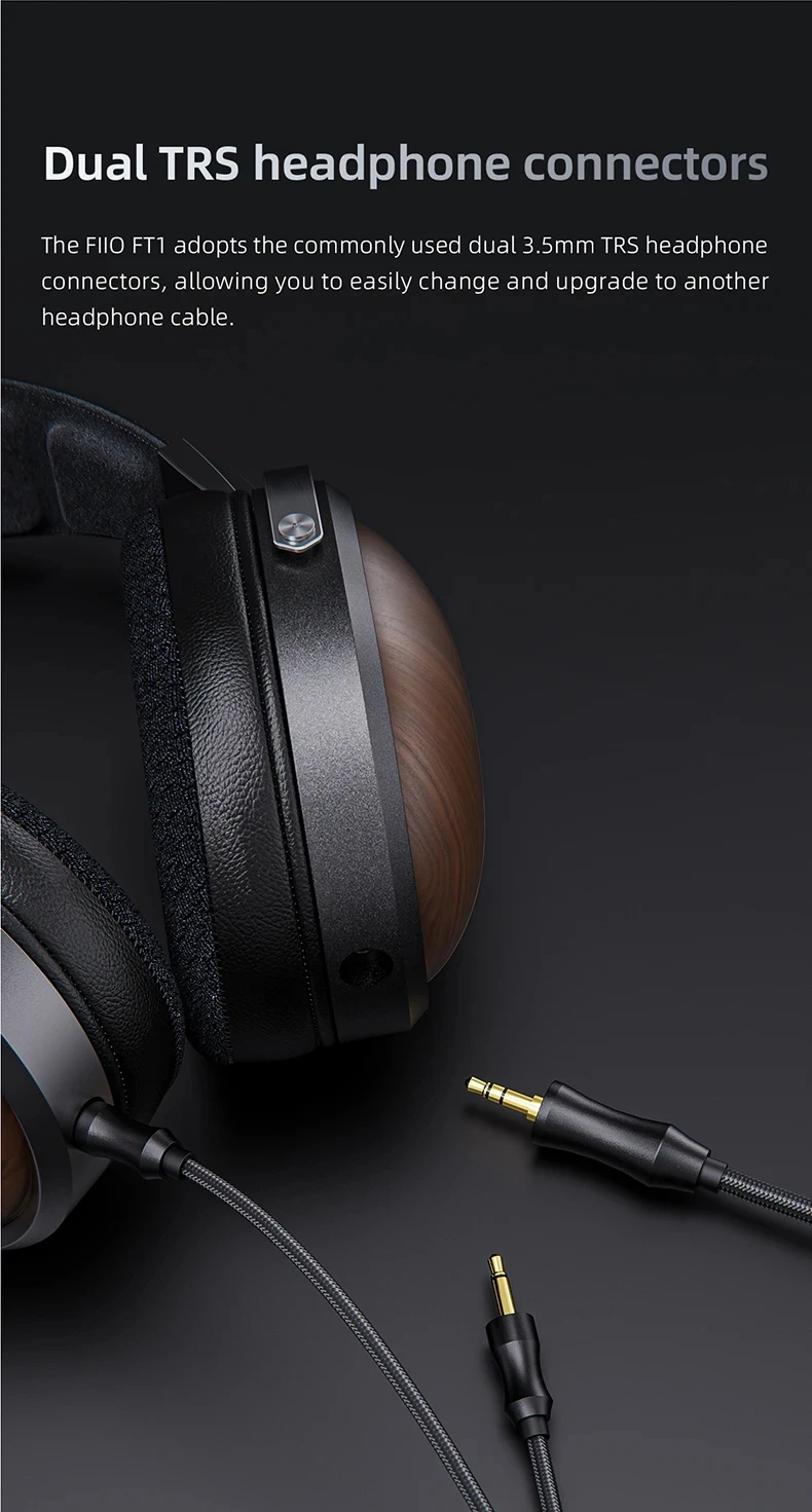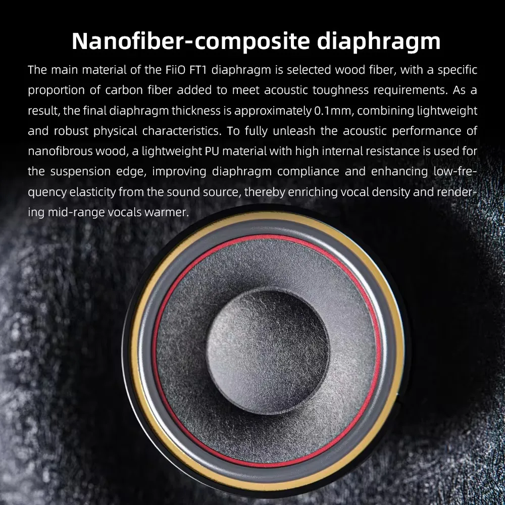 FiiO FT1 Closed-Back Over-Ear Nanowood Fiber Composite Diaphragm Wired Hi-Fi Headphones, American Black Wood Ear Cups for Studio