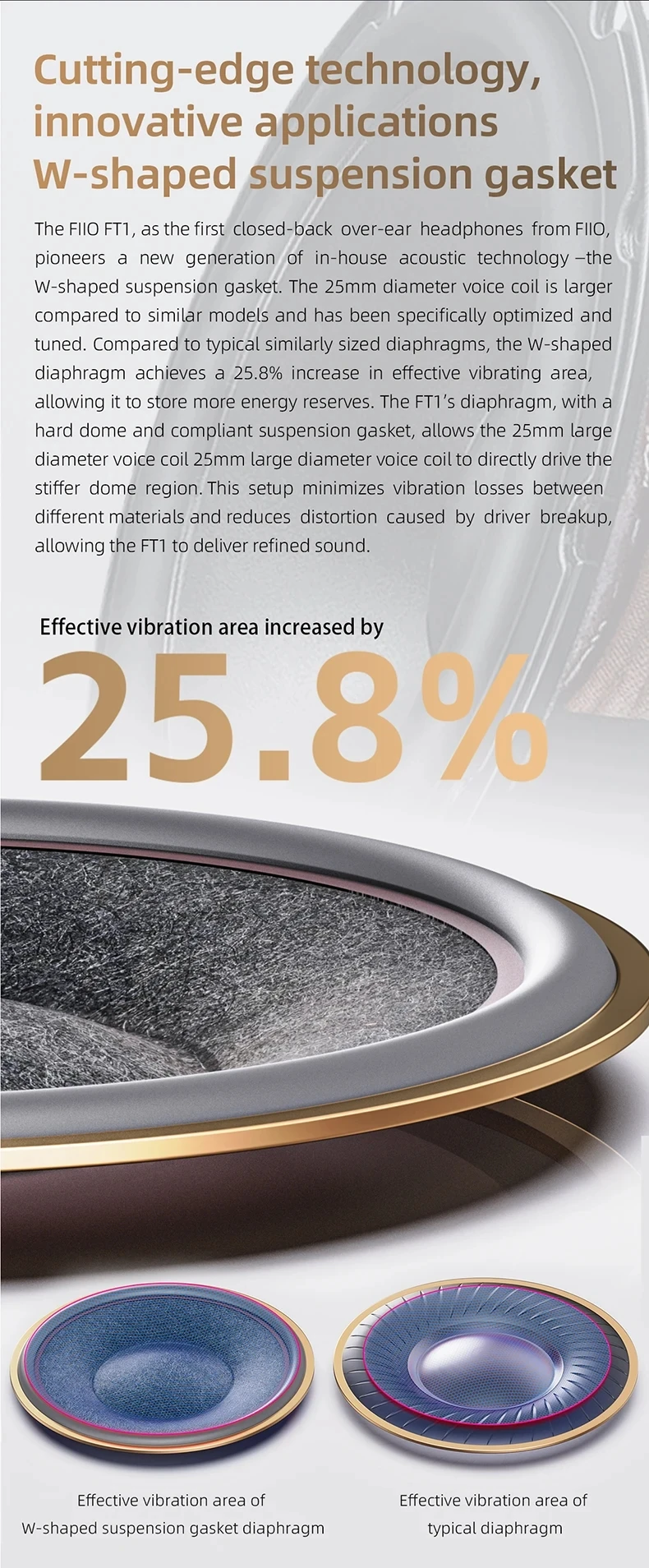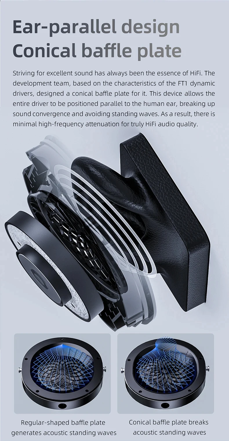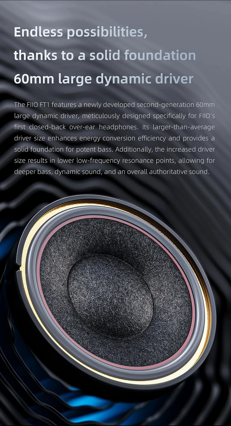 FiiO FT1 Closed-Back Over-Ear Nanowood Fiber Composite Diaphragm Wired Hi-Fi Headphones, American Black Wood Ear Cups for Studio