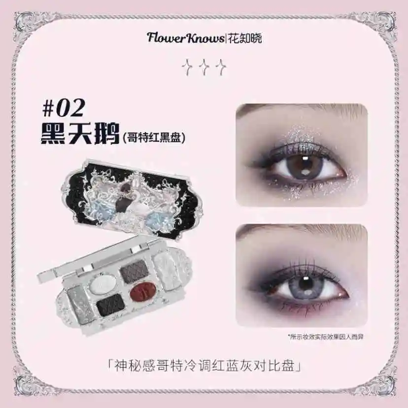 Flower Knows black Swan Ballet Eyeshadow Palette Matte Fine Shimmer Pearl Face Palette 6 Colour Glitter Eye Shadow