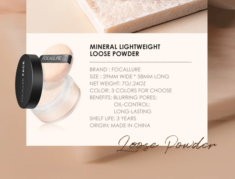 Focallure Invisible Finish Loose Setting Powder Translucent Natural Soft Face Makeup Powder Oil Control Face Loose Powder