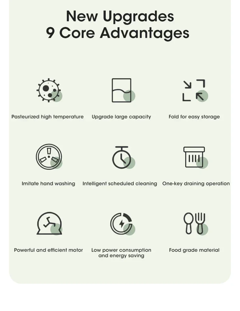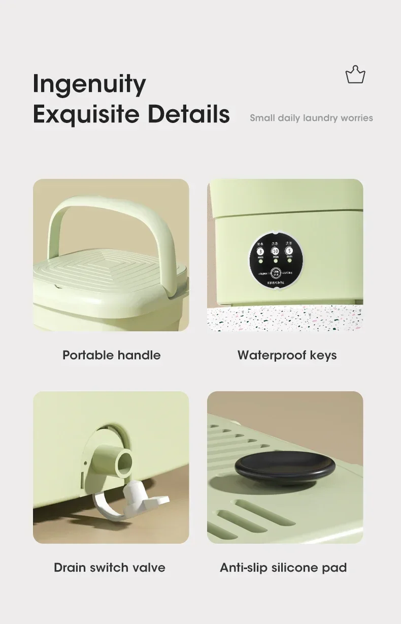 3. Powerful Function: The positive and negative pulsator simulates hand washing, 360° gentle washing does not damage the clothes, strong decontamination and gentle rotation of the clothes, clean and do not hurt the clothes, much cleaner than hand washing.