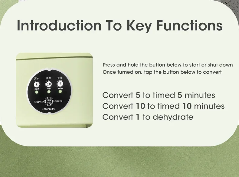 1. Multi-function: Integrated washing and draining, one machine for multiple purposes, soft clothes, used in conjunction with the draining program to gently separate the residual moisture of the clothes.