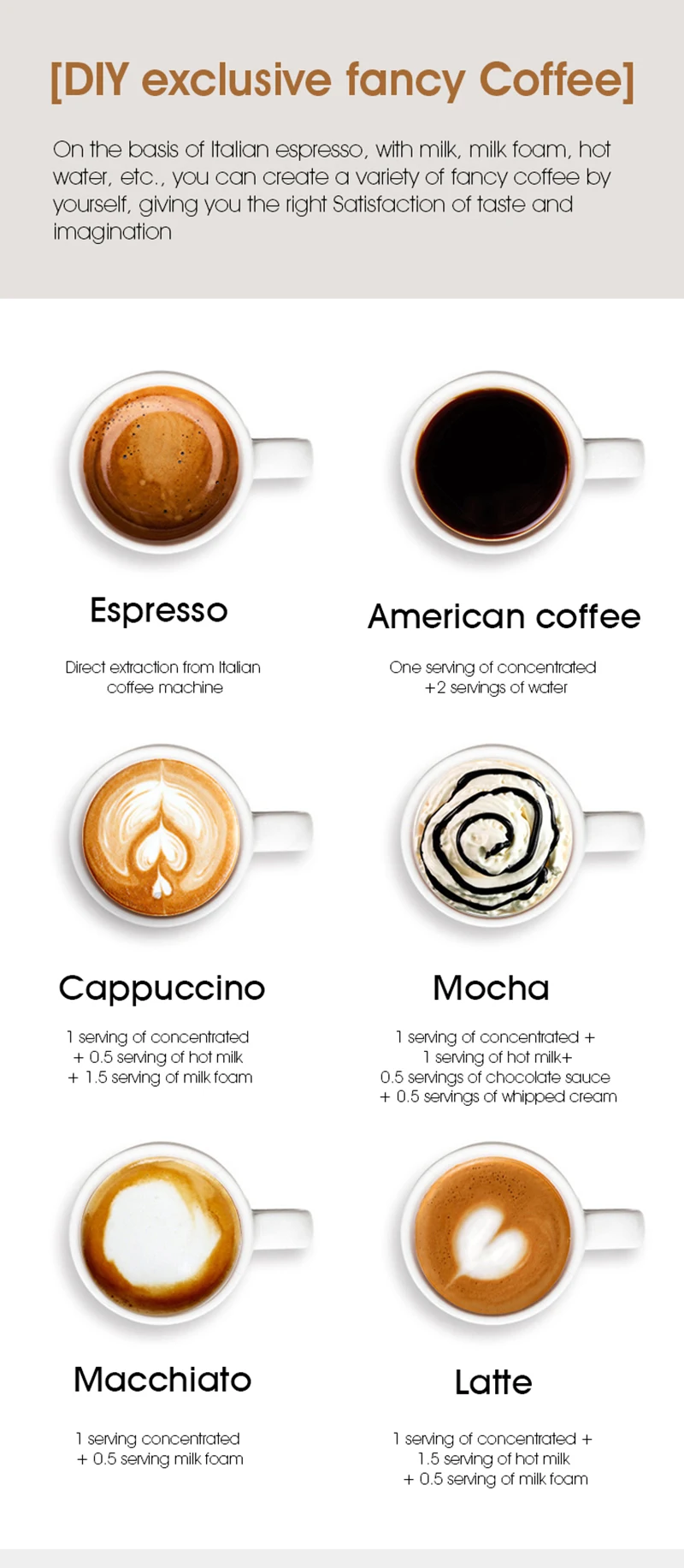 20 Barhigh pressure extraction,The oils in the ground coffee are extracted quickly and completely under high pressure, the aroma is not lost, the coffee is more aromatic, the oils are bright in colour, medium in consistency and retained for a longer period of time.