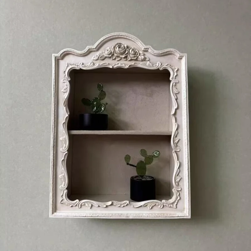 French Country Wall Shelf Organizer, Ornate Resin Carved Wall Console,Vintage Wall Mounted Display Unit for Farmhouse Decor