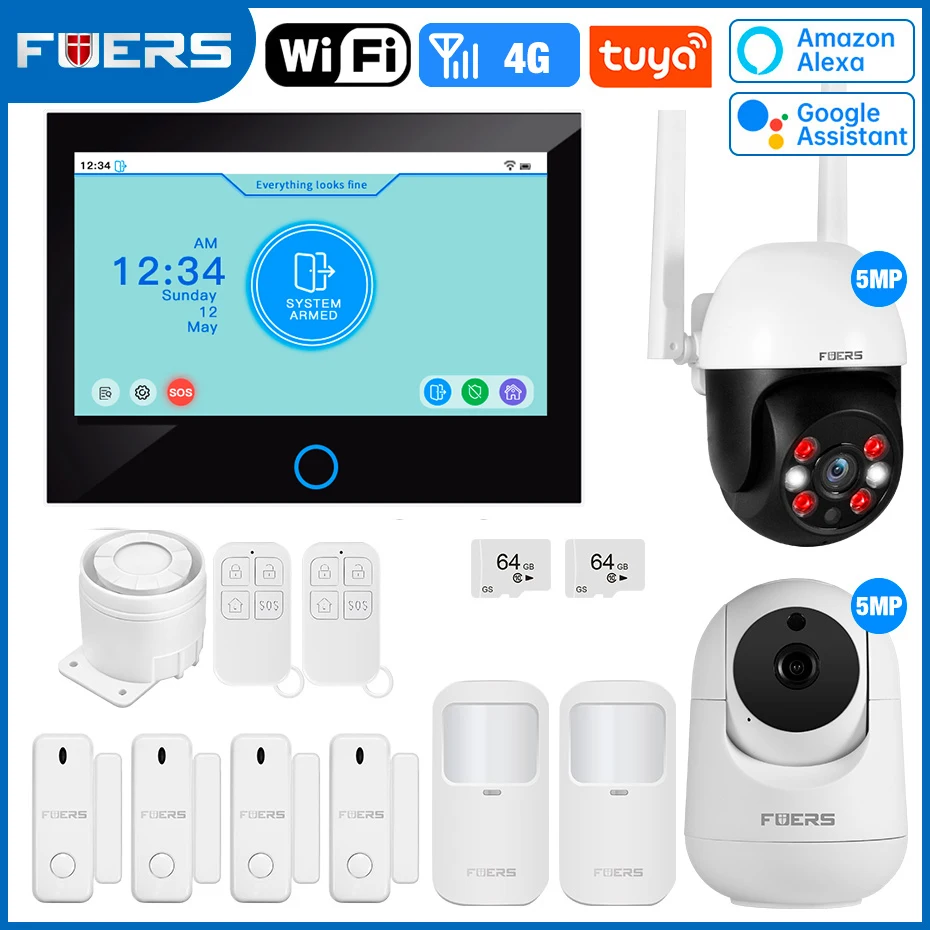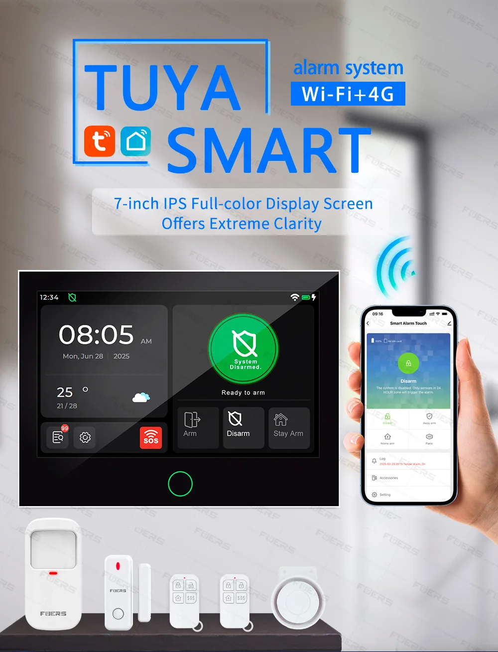 FUERS 7 Inch TFT Screen 4G LTE Tuya Smart Home Security Alarm System G70 GSM WiFi Wireless Home Burglar Security Alarm System