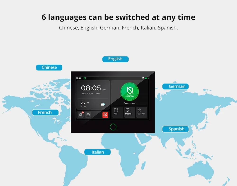 * 6 languages can be switched at any time: Chinese, English, German, French, Italian, Spanish.