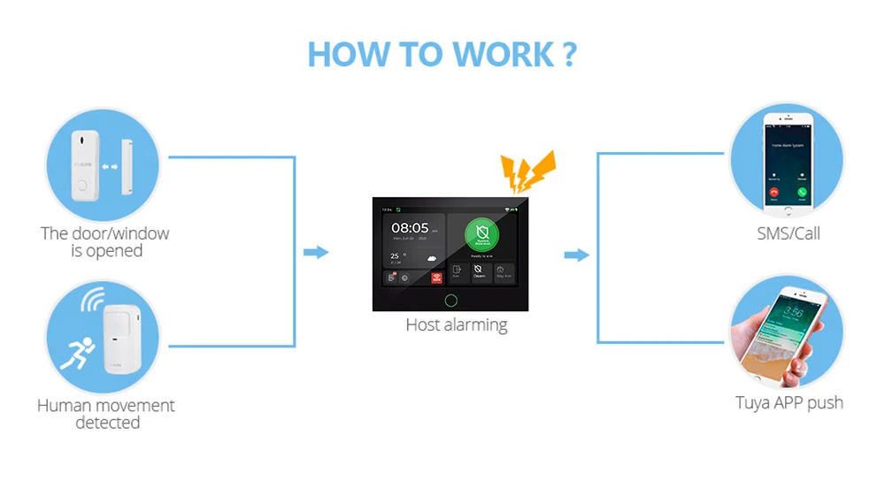 It can be linked to all Tuya solutions for smart home products, such as Tuya cameras, light bulbs, etc., compatible with google Home, Alexa.