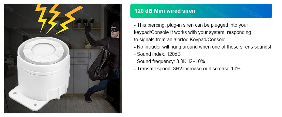 Built-in Siren & Buzzer L oud enough to scare off intruders