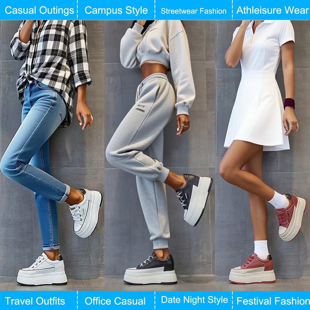 - All-Day Comfort: Experience cloud-like support perfect for travel, walking, and exploring. The cushioned insole provides stability, making these platform sneakers ideal for pairing with dresses or jeans on long outings.