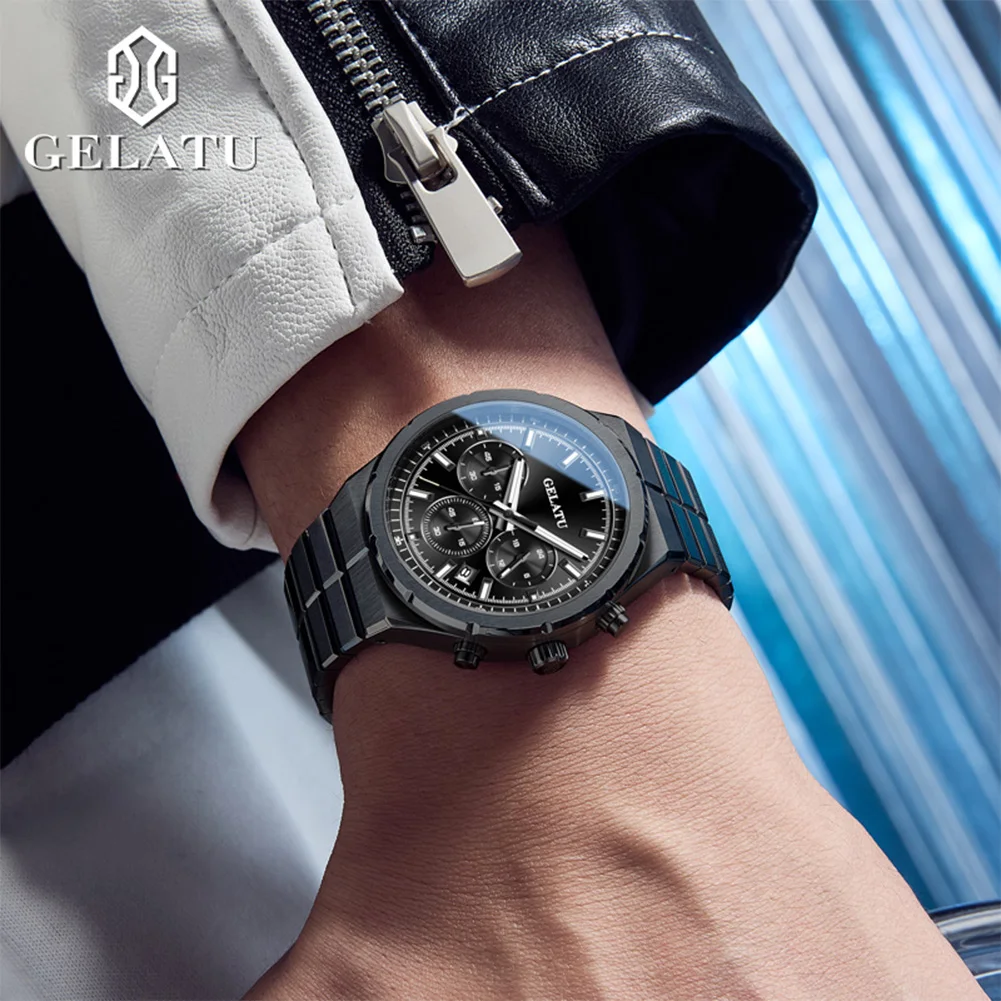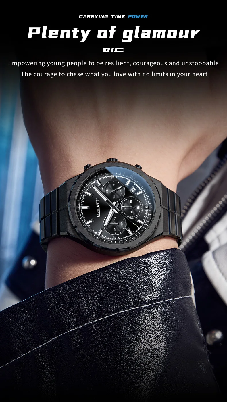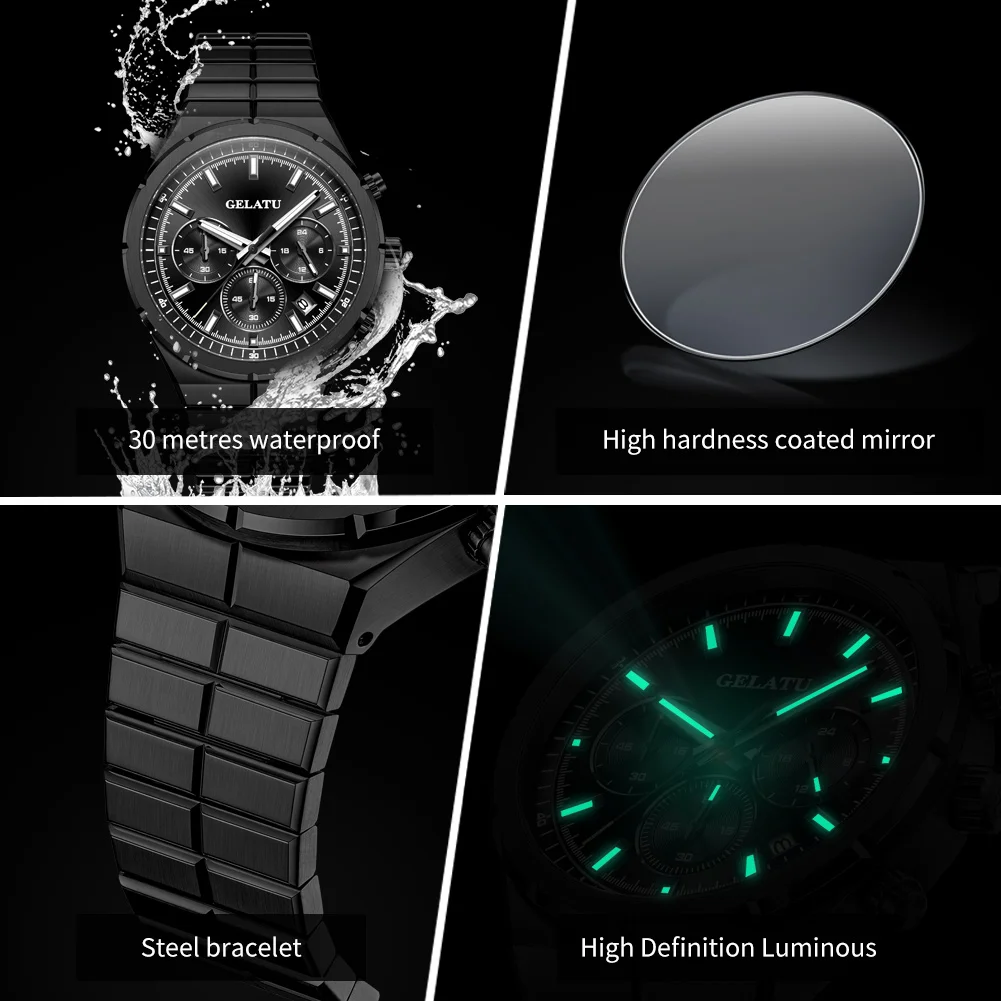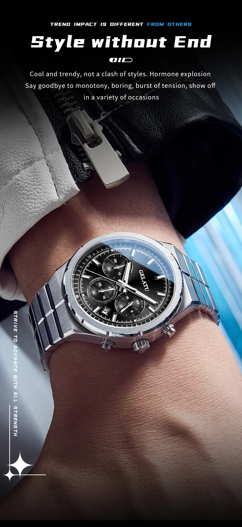 GELATU 8001 Quartz Watch Man Top Brand Steel Strap Chronograph Watch For Men Calendar Waterproof Luminous Fashion Wristwatch