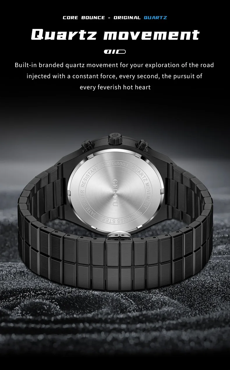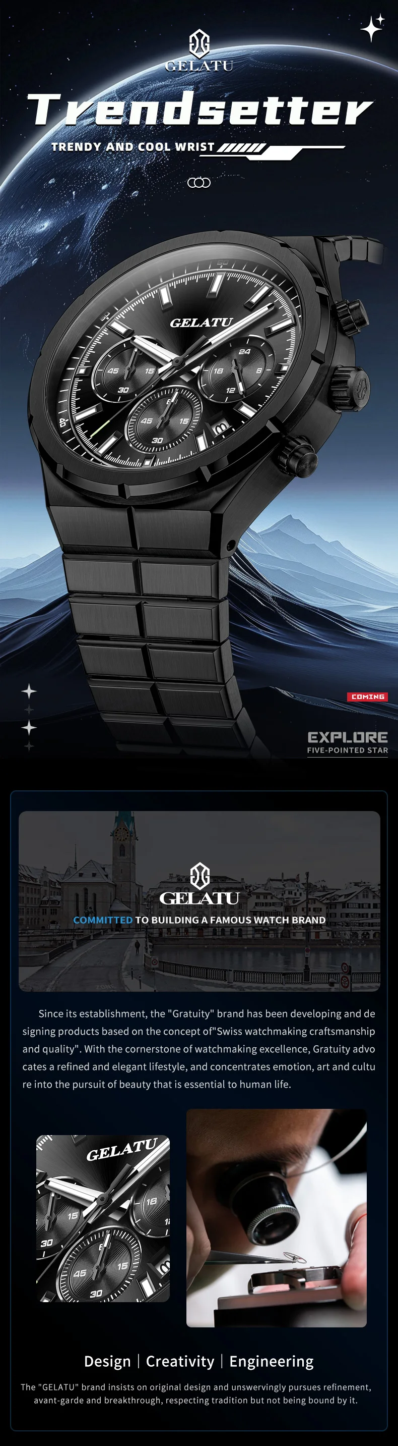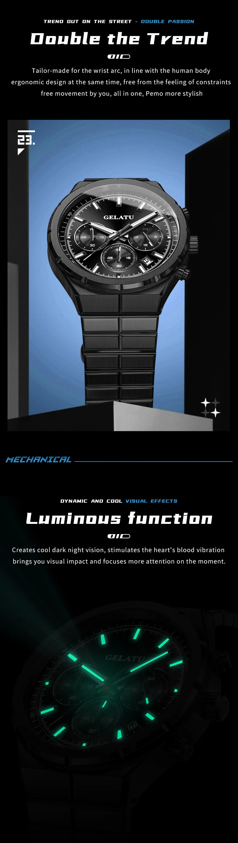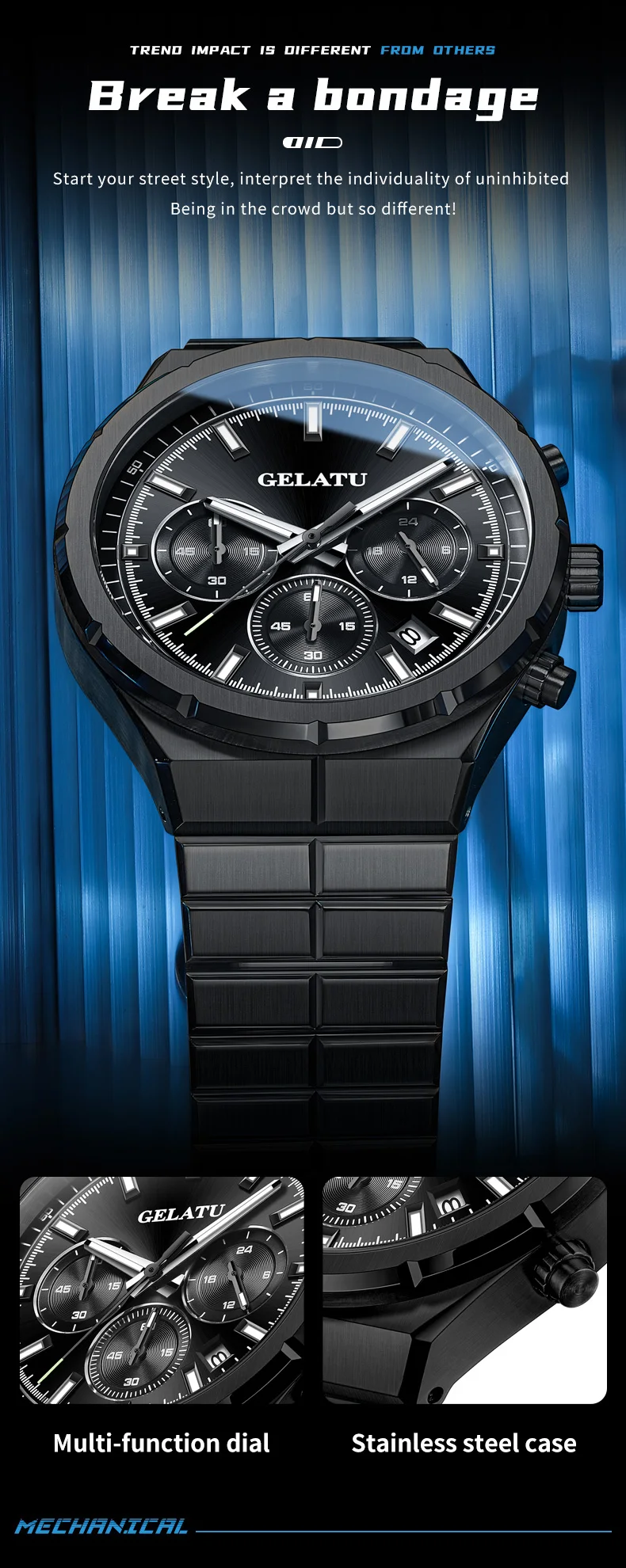 GELATU 8001 Quartz Watch Man Top Brand Steel Strap Chronograph Watch For Men Calendar Waterproof Luminous Fashion Wristwatch