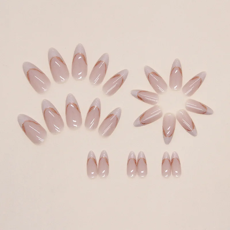 Gilt French 24 Pcs Press on Nails Pink Gradient Fake Nails Glossy Artificial Finger Manicure Reusable False Nails for Women