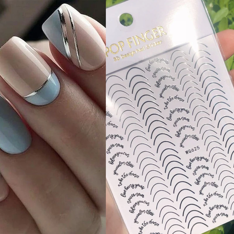 Gold 3D Nail Sticker Curve Stripe Lines Nails Stickers Gradient Adhesive Striping Tape Nail Foil Nail Art Stickers Decals Silver