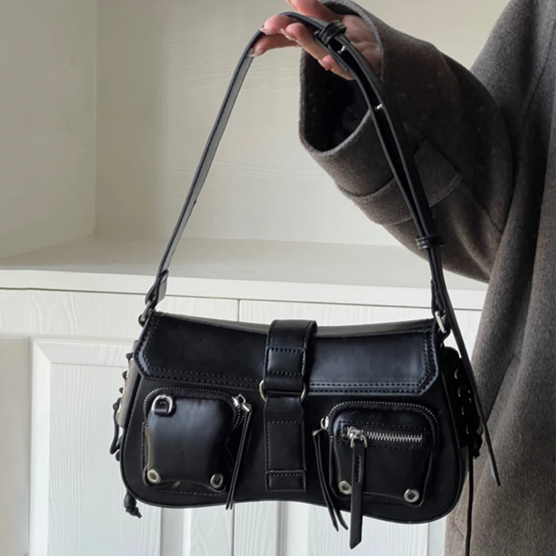 Gothic Punk Cool Women’s Underarm Bag Girls Shoulder Crossbody Bags Fashion Design PU Leather Female Vintage Small Handbags Tote