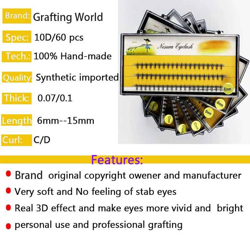Grafting World 10D Natural Eyelash Extensions Mink Black Fake False Eyelashes Curl Natural Eye Grafting Individual Lashes