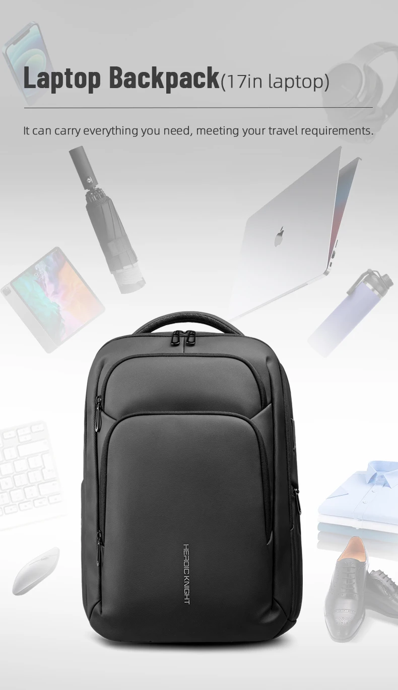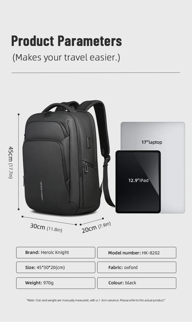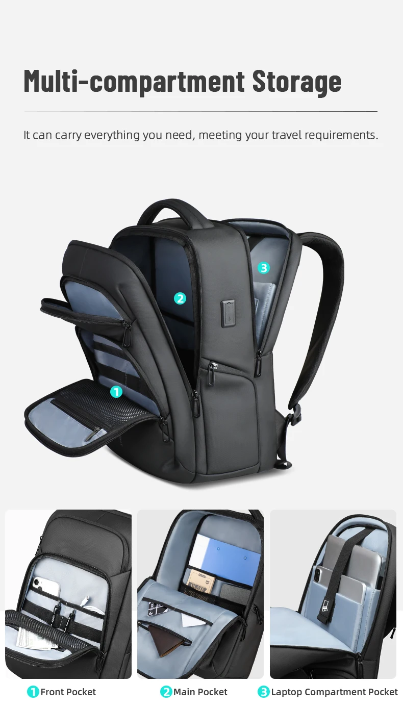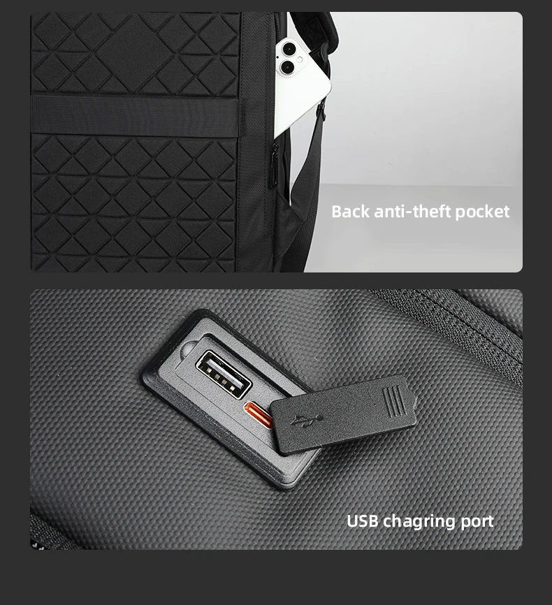 Large capacity multi-pocket design with 17” computer compartment and external USB port ensures items are organised and ready to charge. Breathable shoulder straps provide a comfortable carrying experience. Can be used for both daily commuting and business travelling.