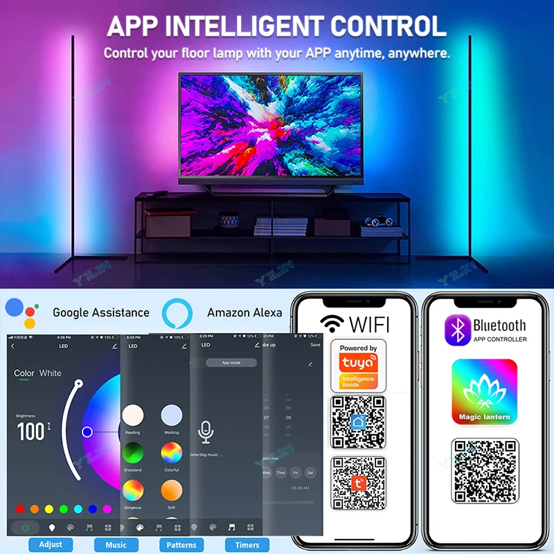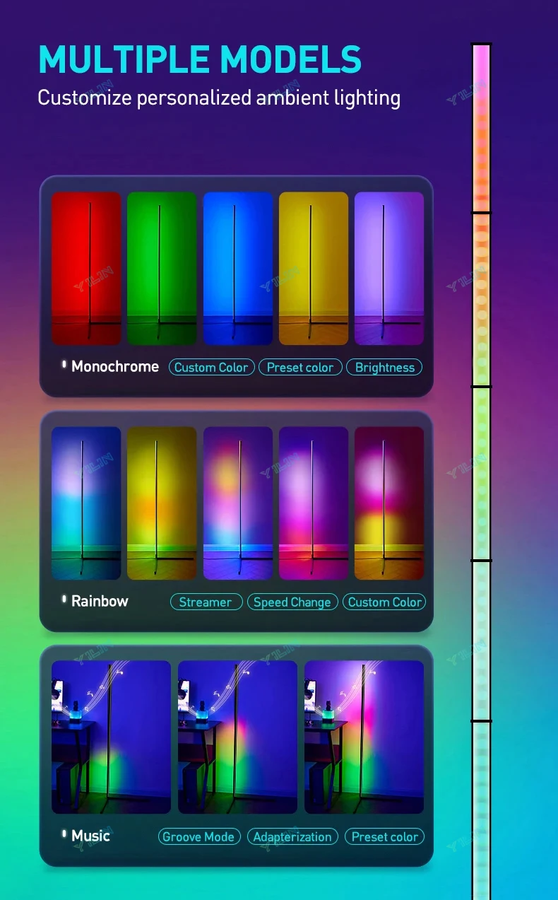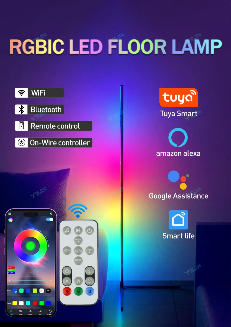 Heightening 180CM Smart Floor Lamp RGBIC Tuya Smart APP Remote Control Nordic Stand Floor Mood Light For Game Room Decoration