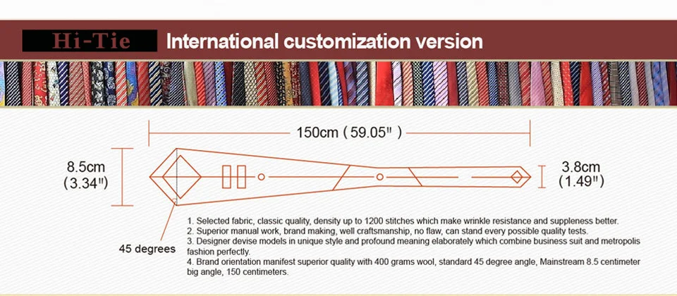 Hi-Tie’s headquarter is located in Beijing, design department is located in Italy. The tie is Chinese famous brand product which have real silk tie, polyester tie, silk wool blend tie, nanometer tie etc. and other ties in various fabric and style. Provide more choosing space to citizens who chase fashion and unique.