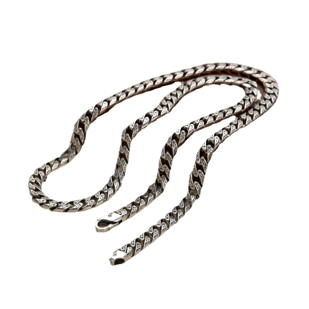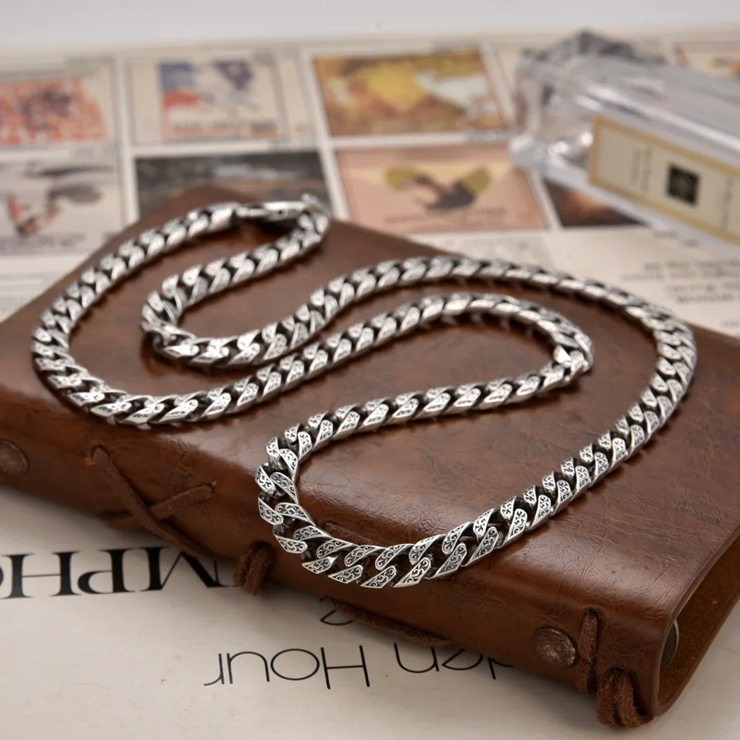 High-grade rattan pattern vintage necklace niche 925 sterling silver men’s thick type personality Cuban link chain sweater chain