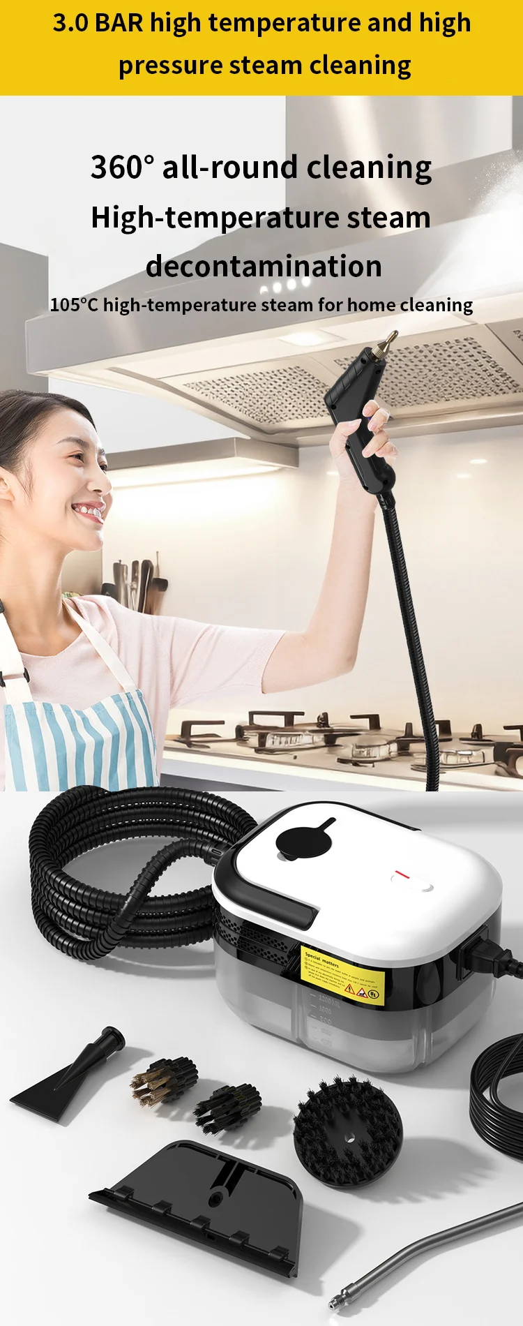 2. Rapidly dissolve stains with 100℃ high-temperature steam