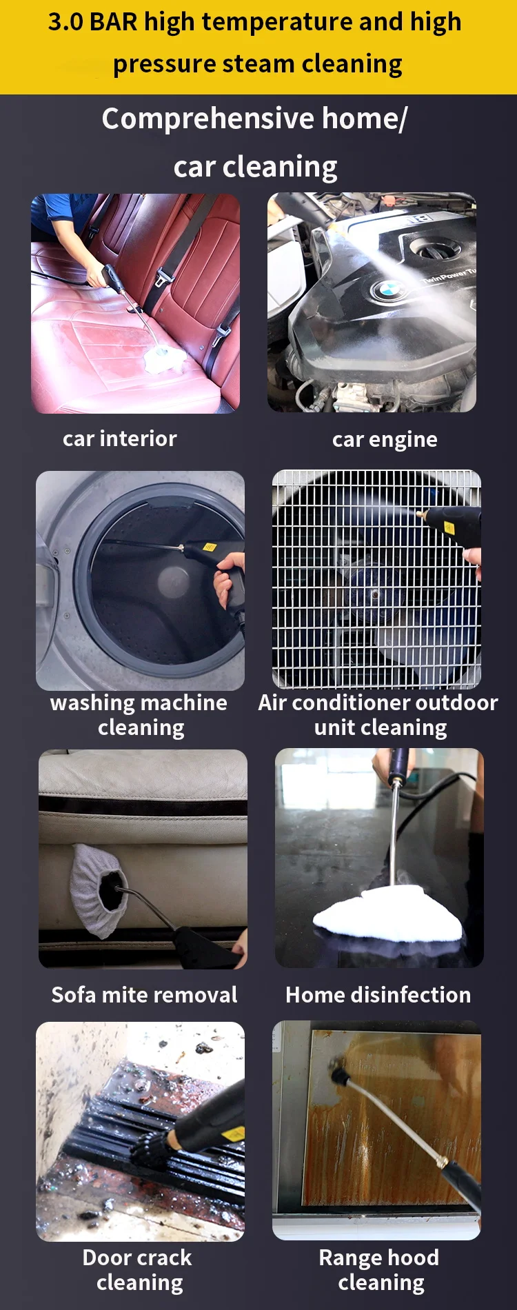 Steam Cleaner High PressureTemperature Steam Mop Sterilization Handhled Household Air Conditioner For Kitchen Furniture Bathroom Car