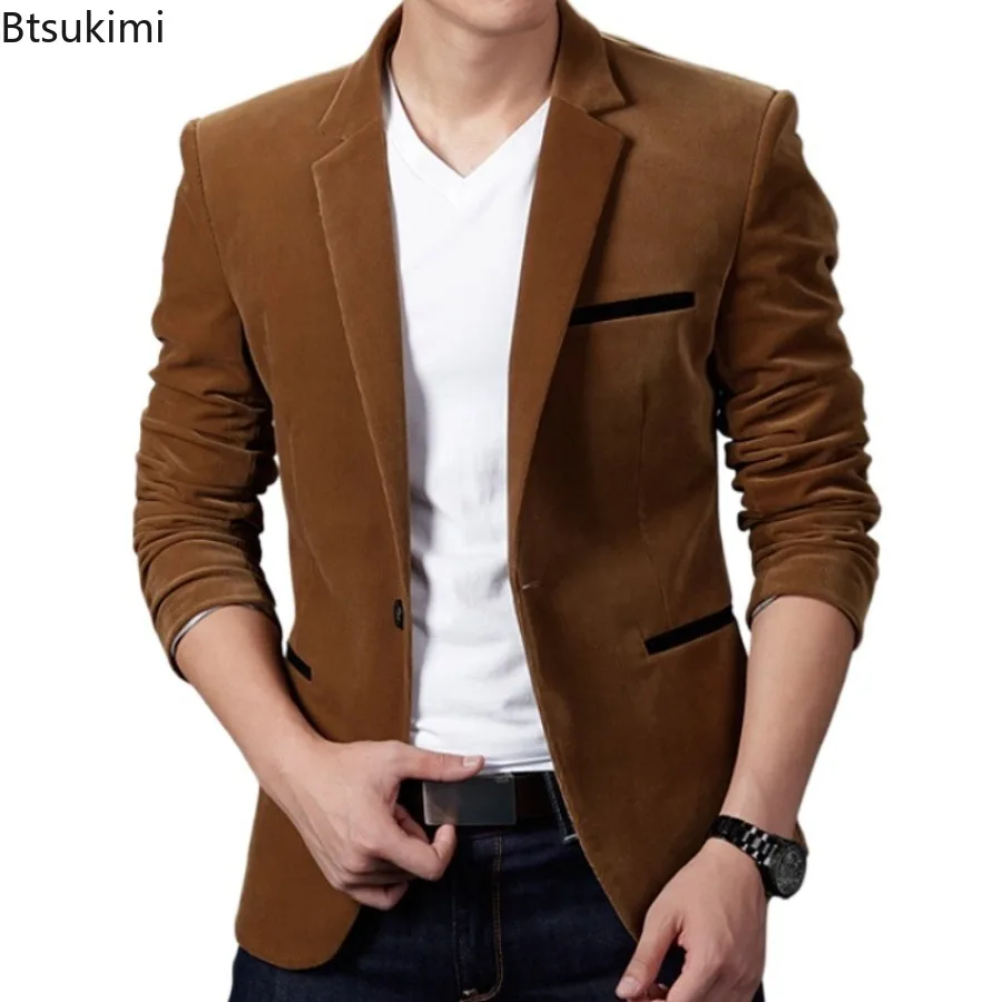 High Quality Men’s Corduroy Suit Jackets Spring Autumn Fashion Business Casual Dress Suit Classic Single-button Men Slim Blazers