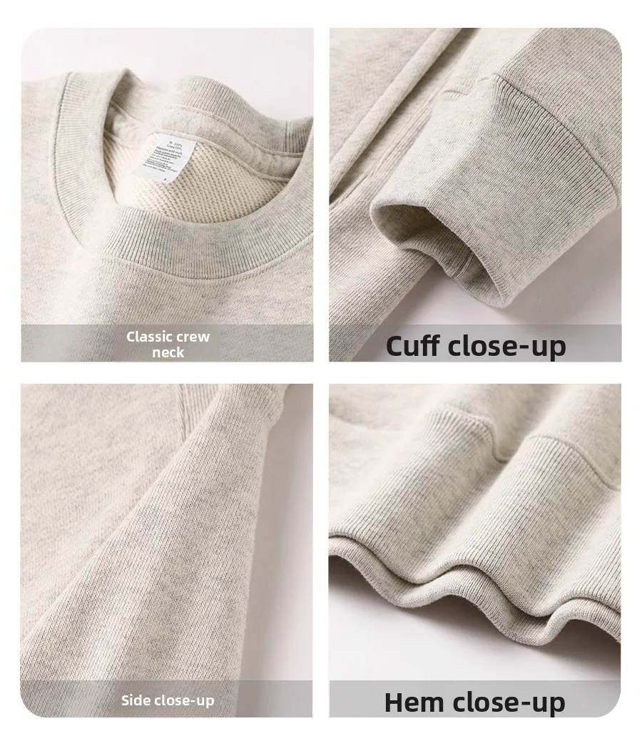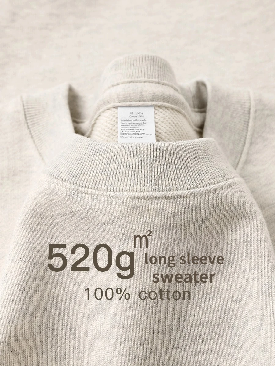 High Quality Oat Gray 520G Heavy Terry Cloth Crew Neck Sweater Men’s Simple Loose Top Women sweatshirts