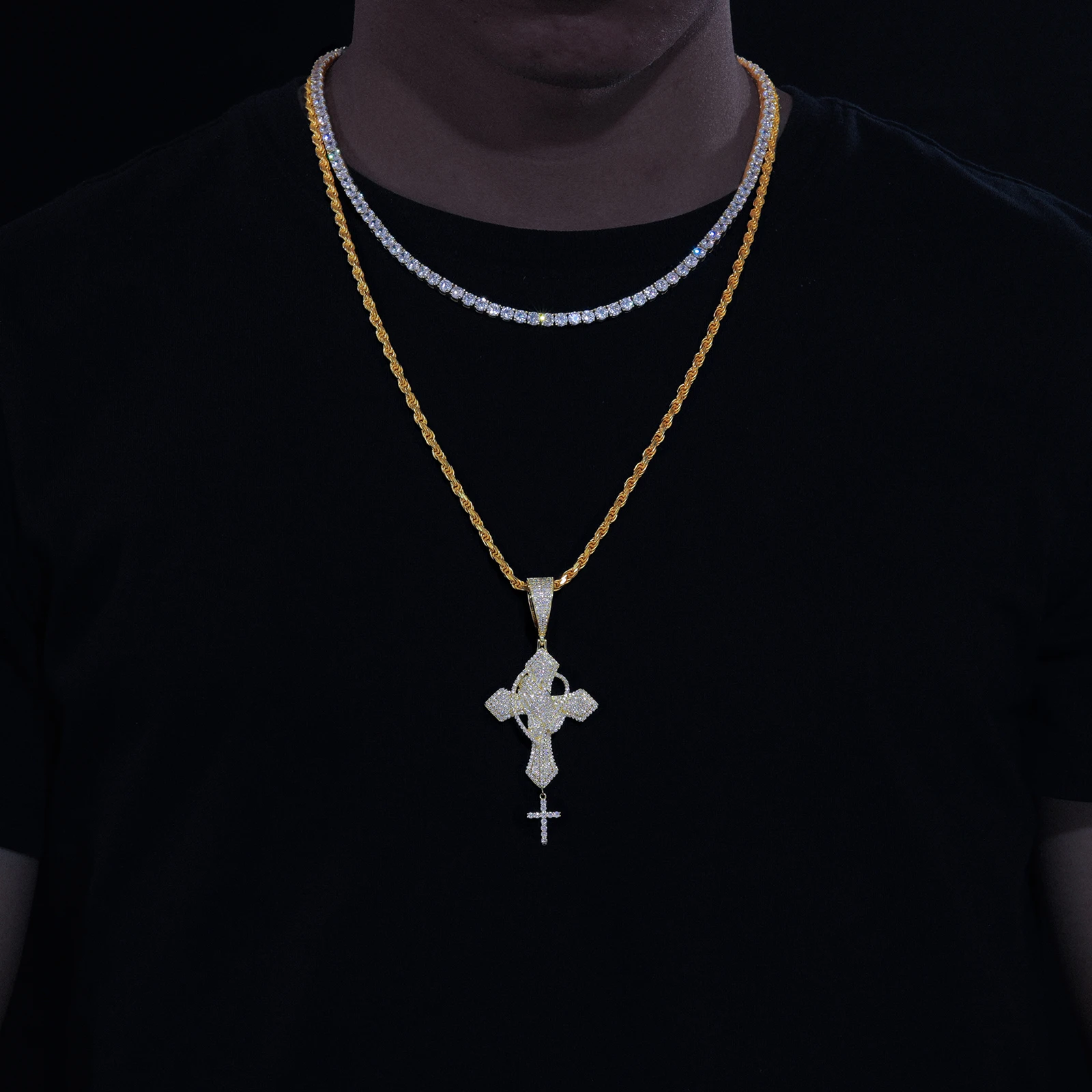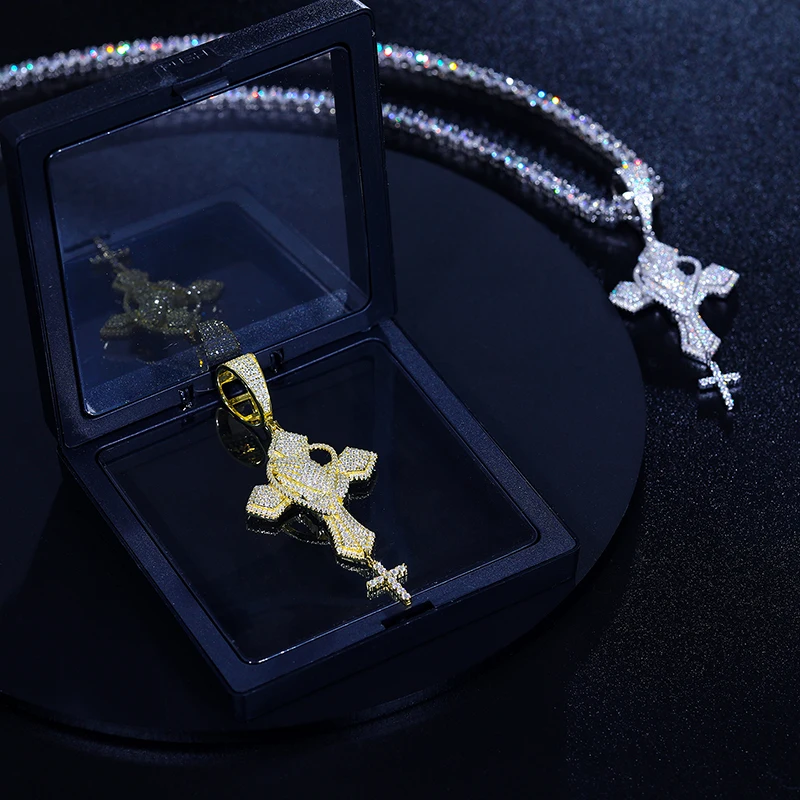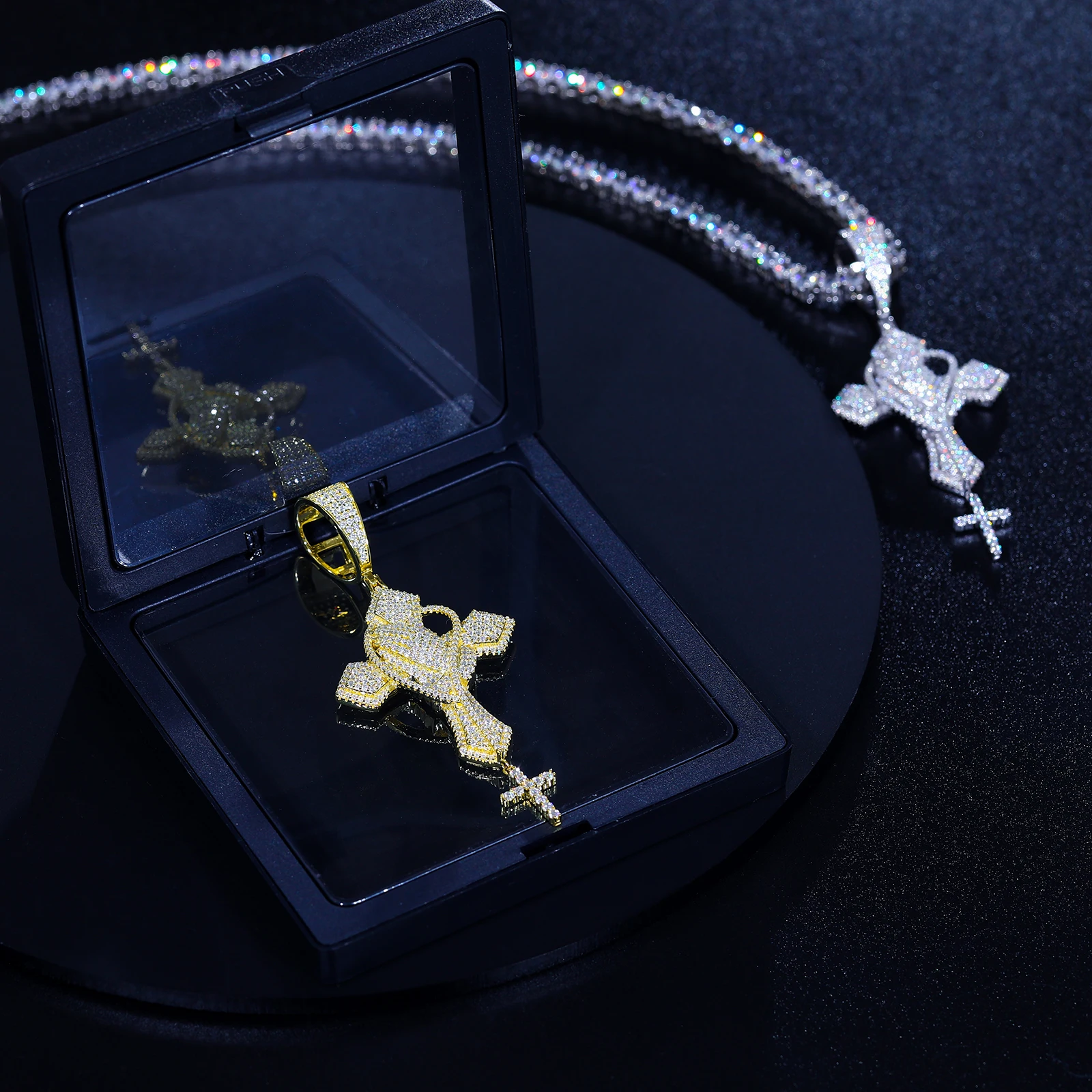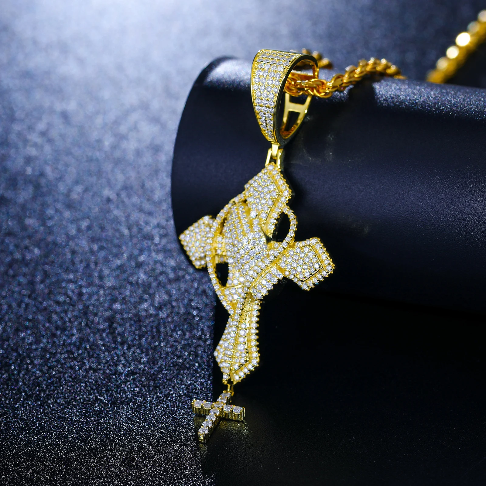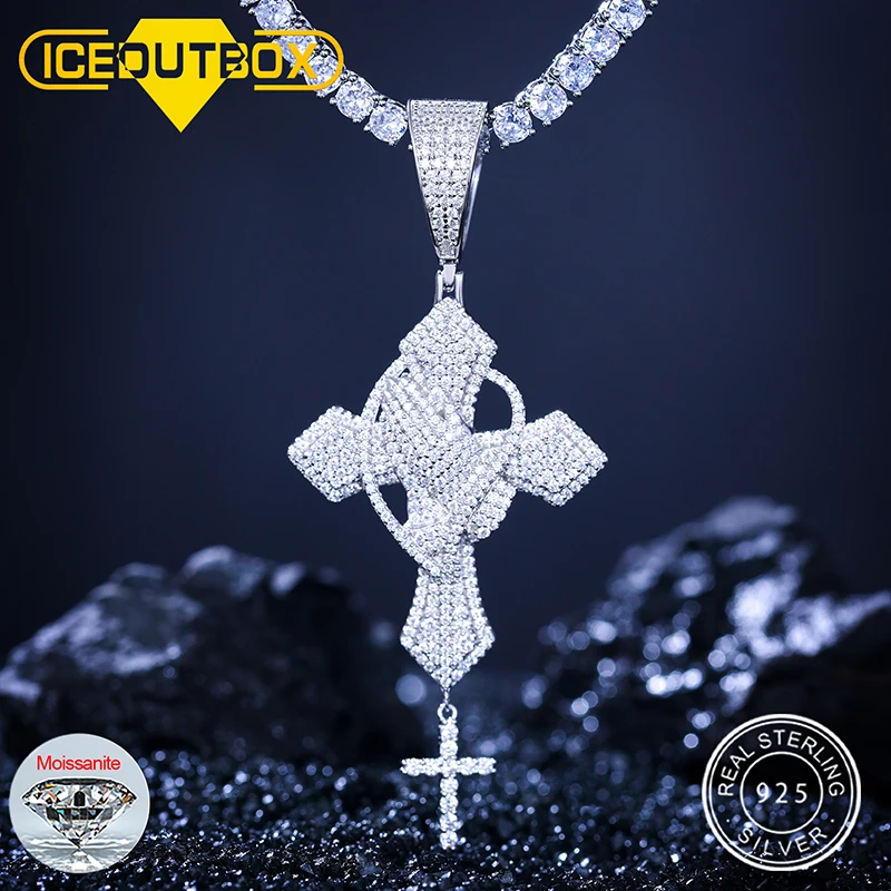 Hip Hop Bling D Color Moissanite Iced Out Praying Hands Cross Necklaces & Pendants For Men Jewelry 925 Sterling Silver Gifts