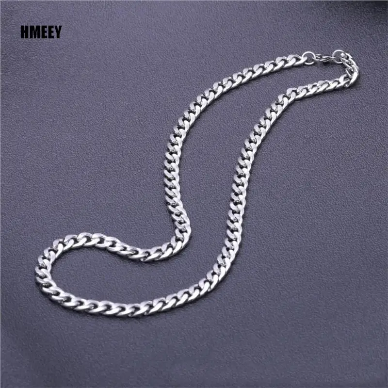 Hmeey Stainless Steel Chain Necklace Long Hip Hop for Women Men on The Neck Fashion Jewelry Gift Accessories Silver Color Choker