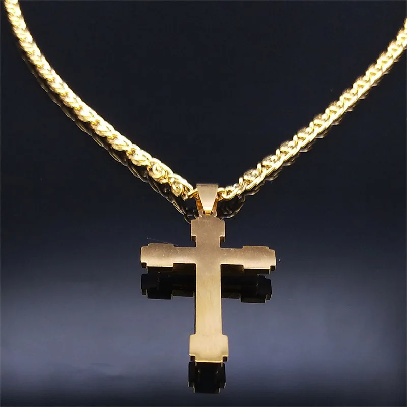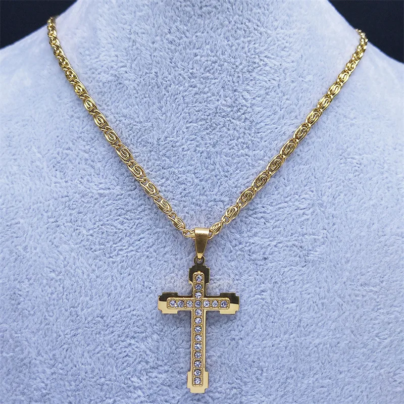 HNSP Stainless Steel Luxury Zircon Cross Necklace Pendant For Men Women Jewelry Accessories