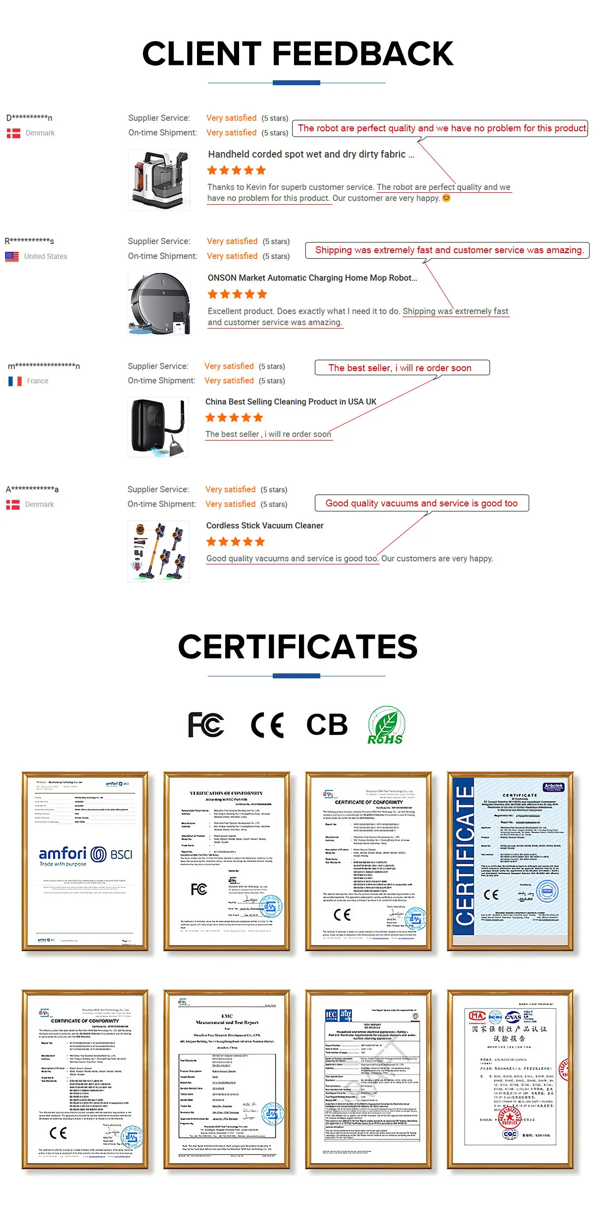 Sewage full protection, floor brush blocking protection, self-cleaning low battery protection,overcurrent overload protection, battery charging and discharging protection, short circuit protection, overvoltage and overtemperature protection, etc