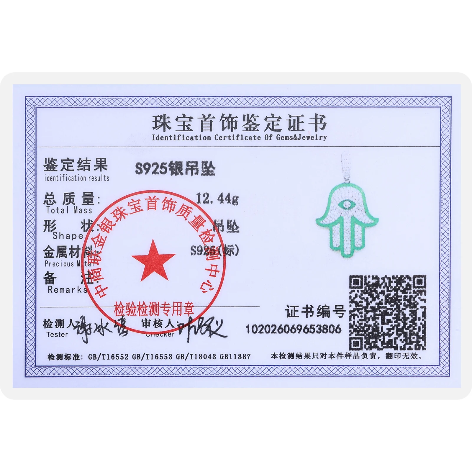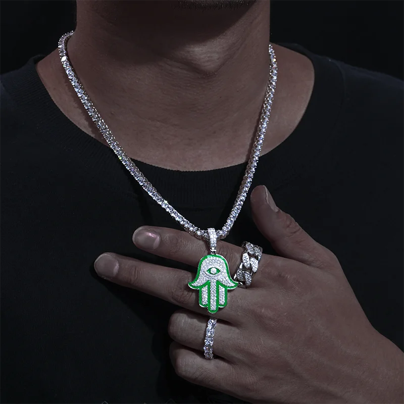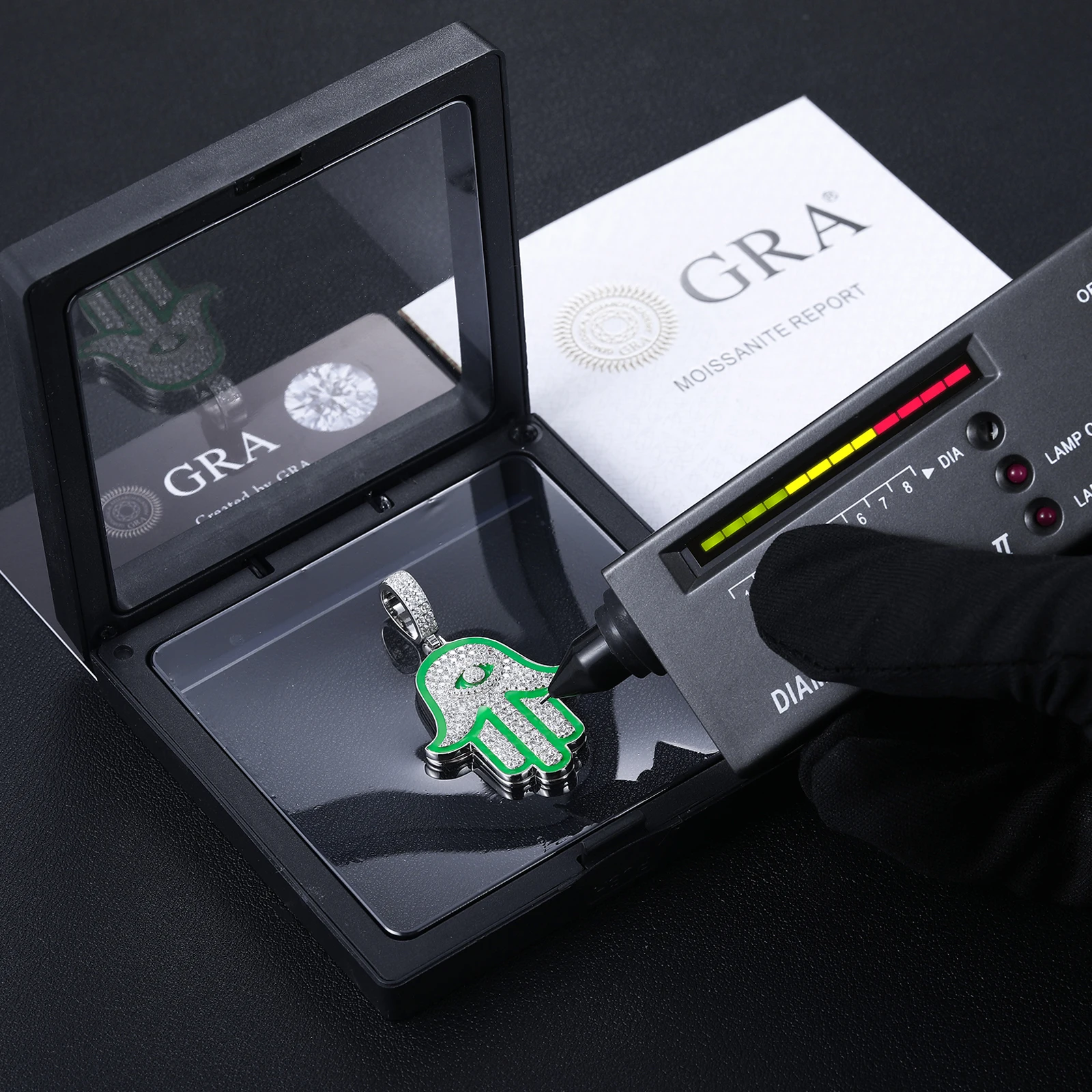 Hot Sale Glowing Hamsa Hand Pendant D Color VVS Moissanite 925 Sterling Silver Iced Out Bling Charm Hip Hop Women Men Jewelry