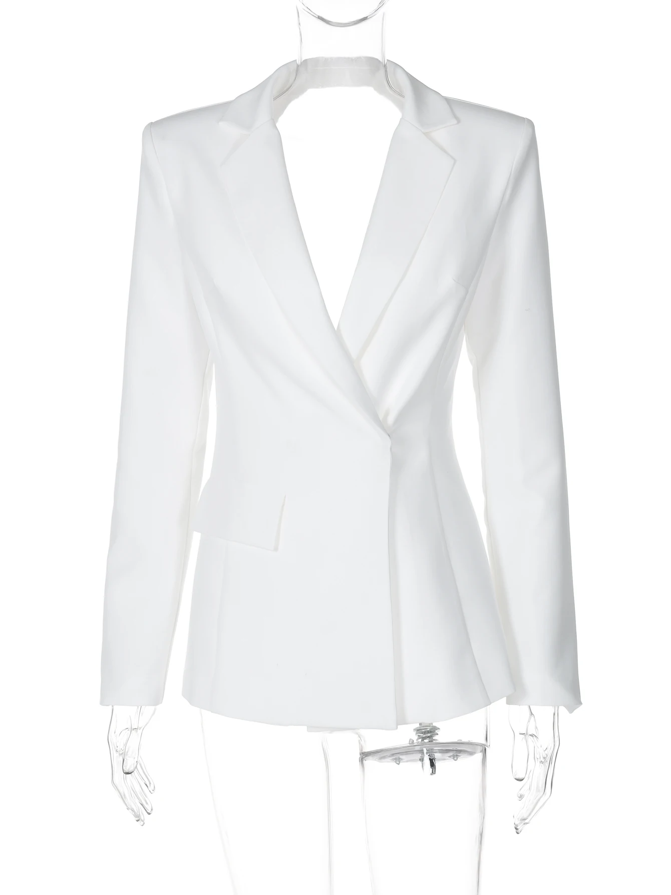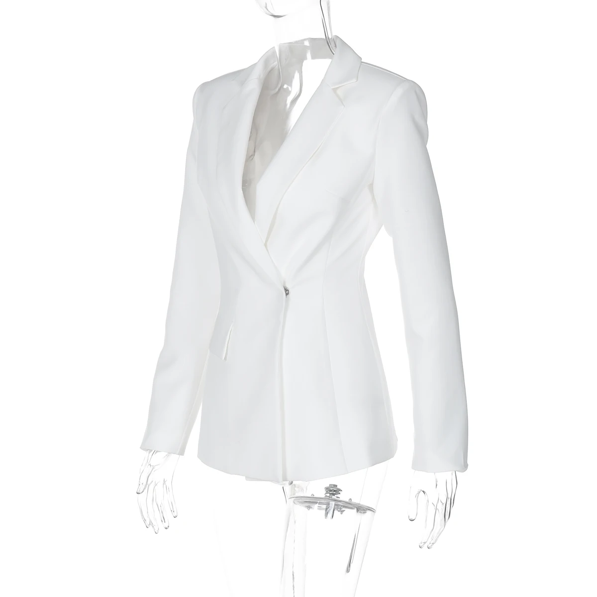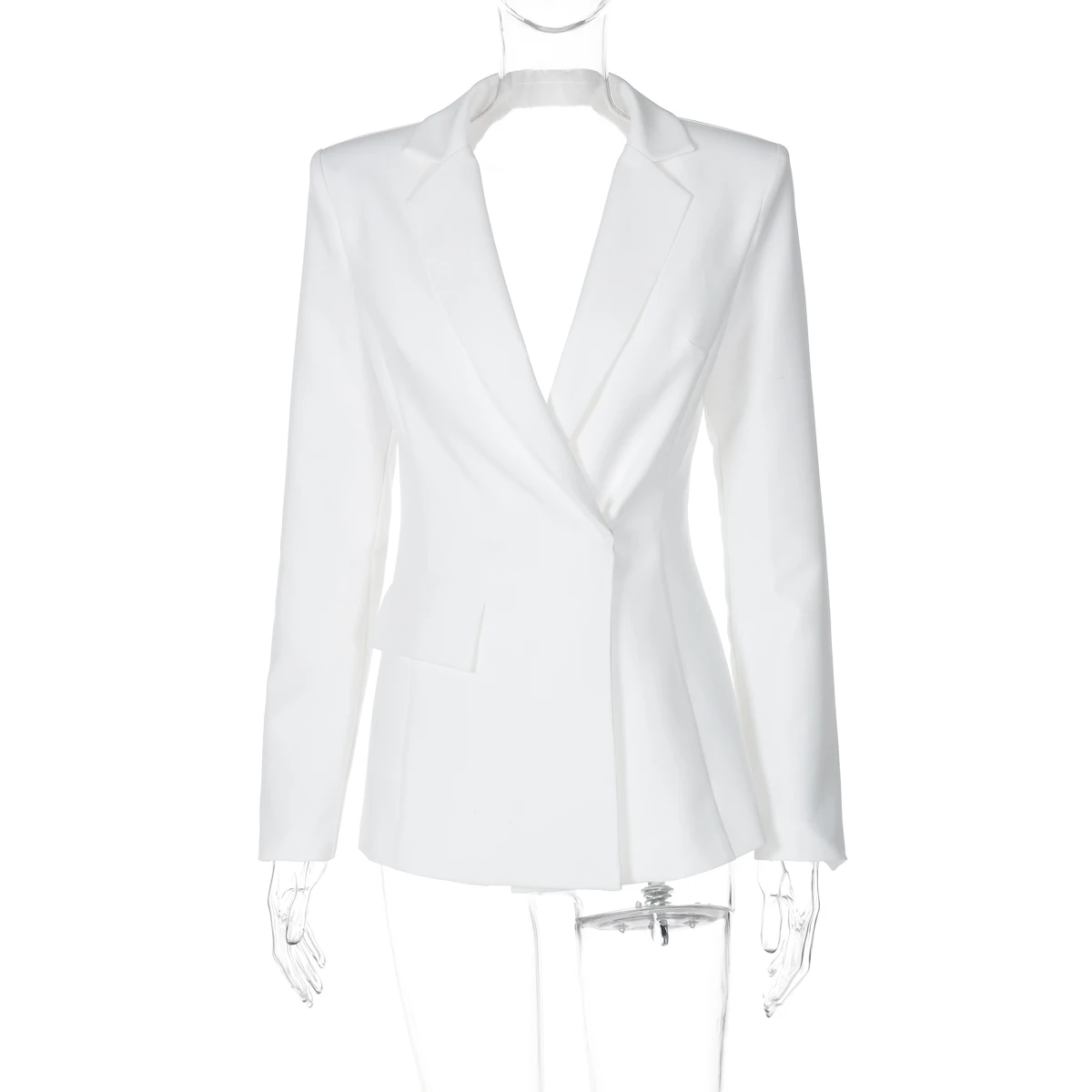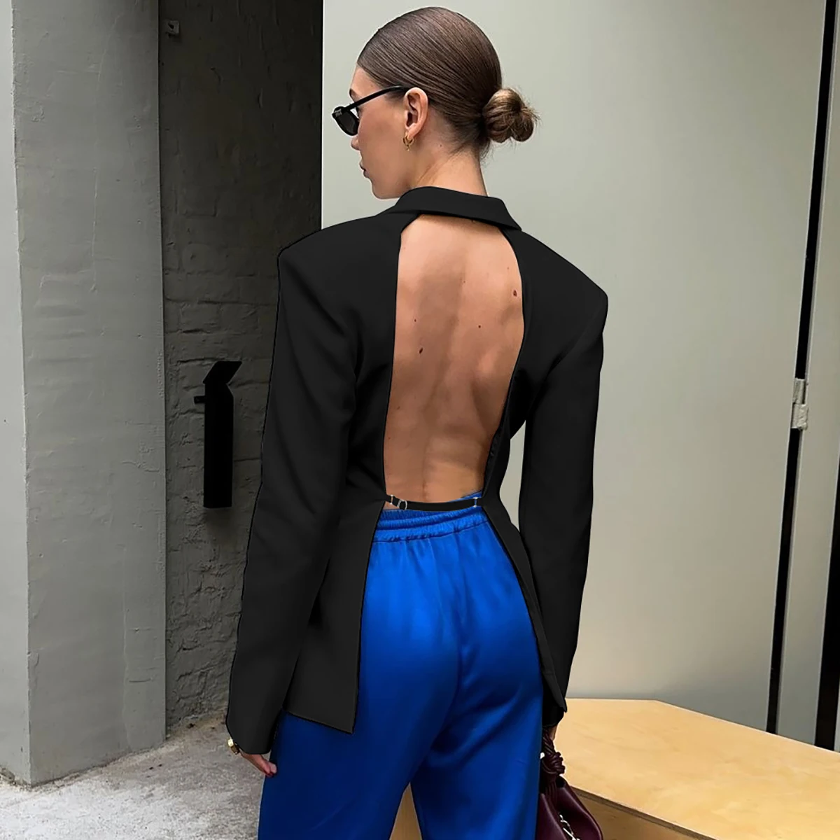 Hugcitar Solid Notched Collar Long Sleeve Button Backless Slip Sexy Oversize Suit Blazer Coat Female Fashion Top Party Vacation