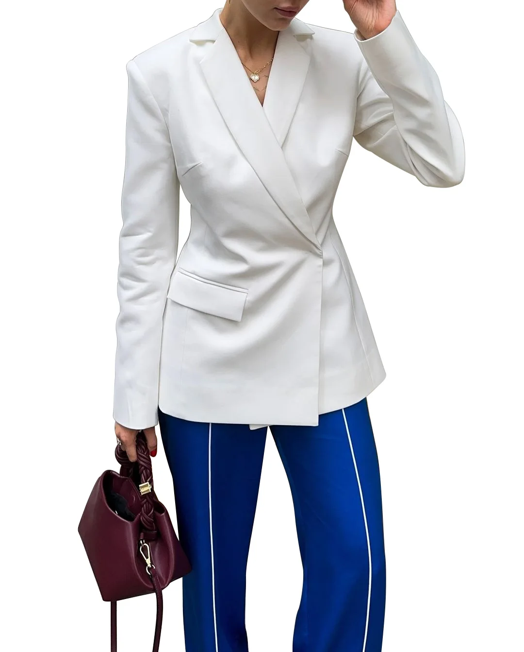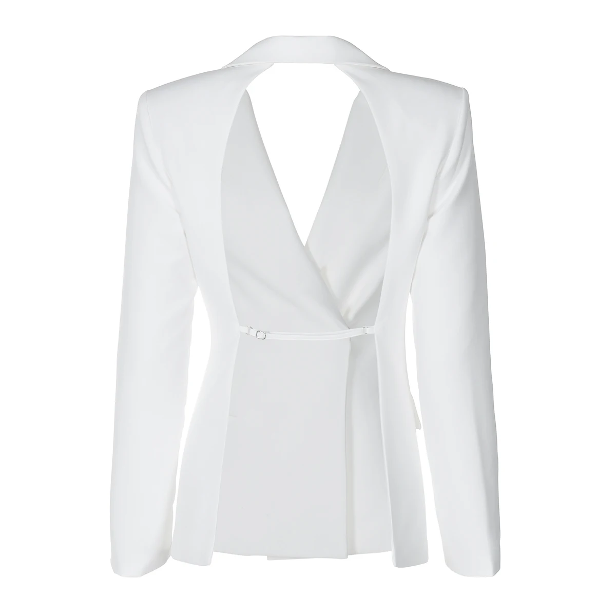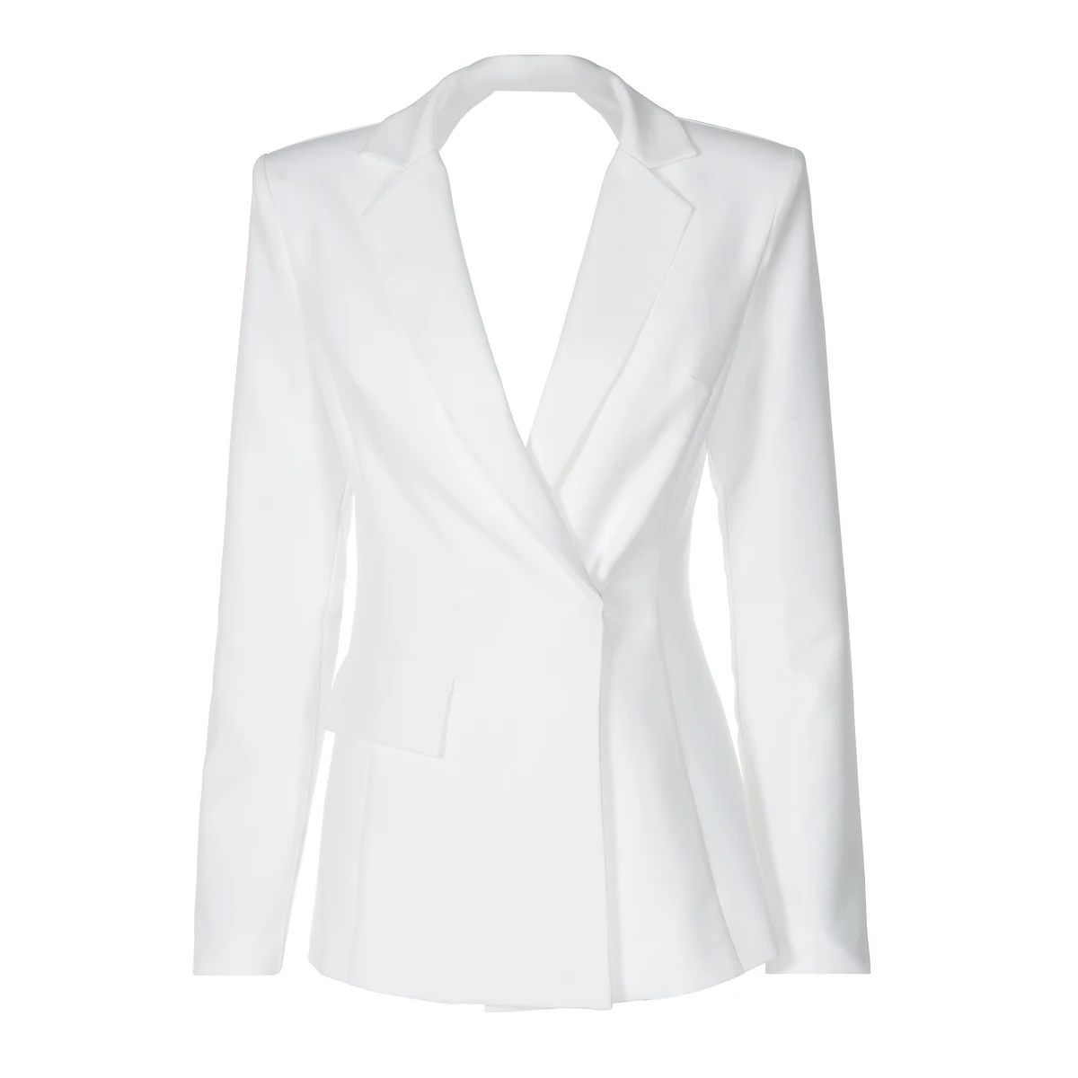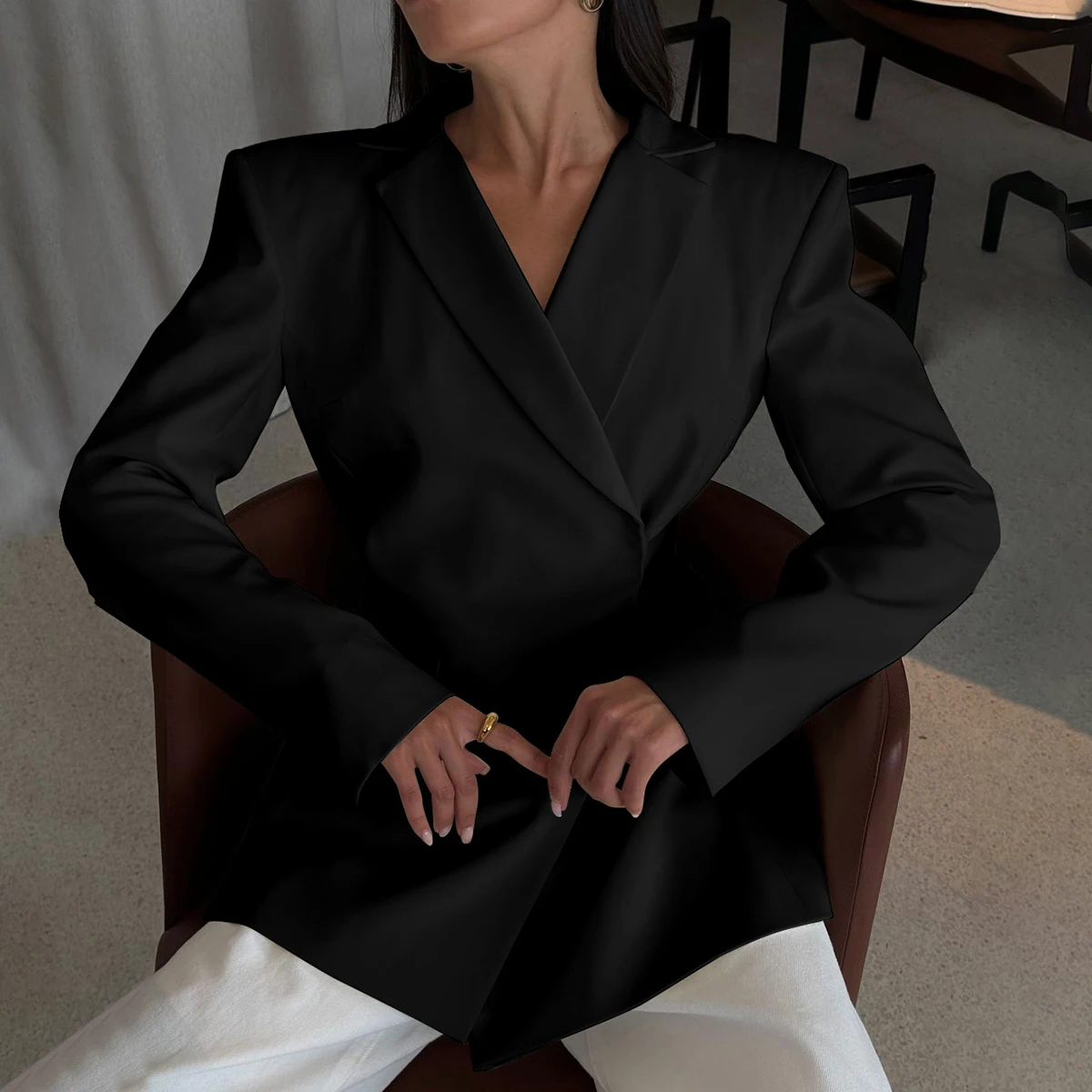 Hugcitar Solid Notched Collar Long Sleeve Button Backless Slip Sexy Oversize Suit Blazer Coat Female Fashion Top Party Vacation