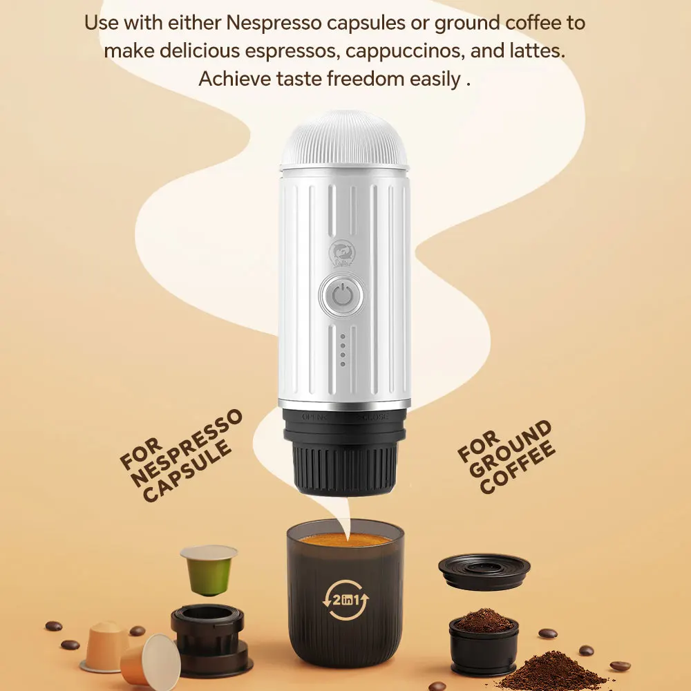 Enjoy the perfect cup of coffee anywhere with this innovative and portable espresso maker!