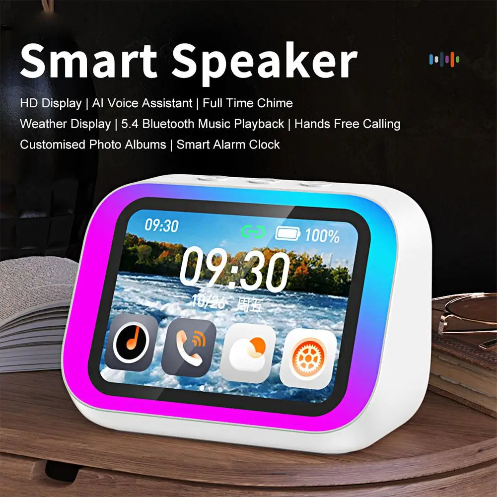 Intelligent Bluetooth Speaker AI Voice Assistant Smart Display Music Player Weather Alarm Clock Photo Album Black/White BT 5.4