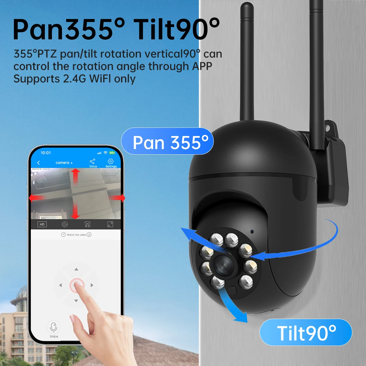 *PTZ: rotates 355 degrees left and right and rotates 90 degrees vertically