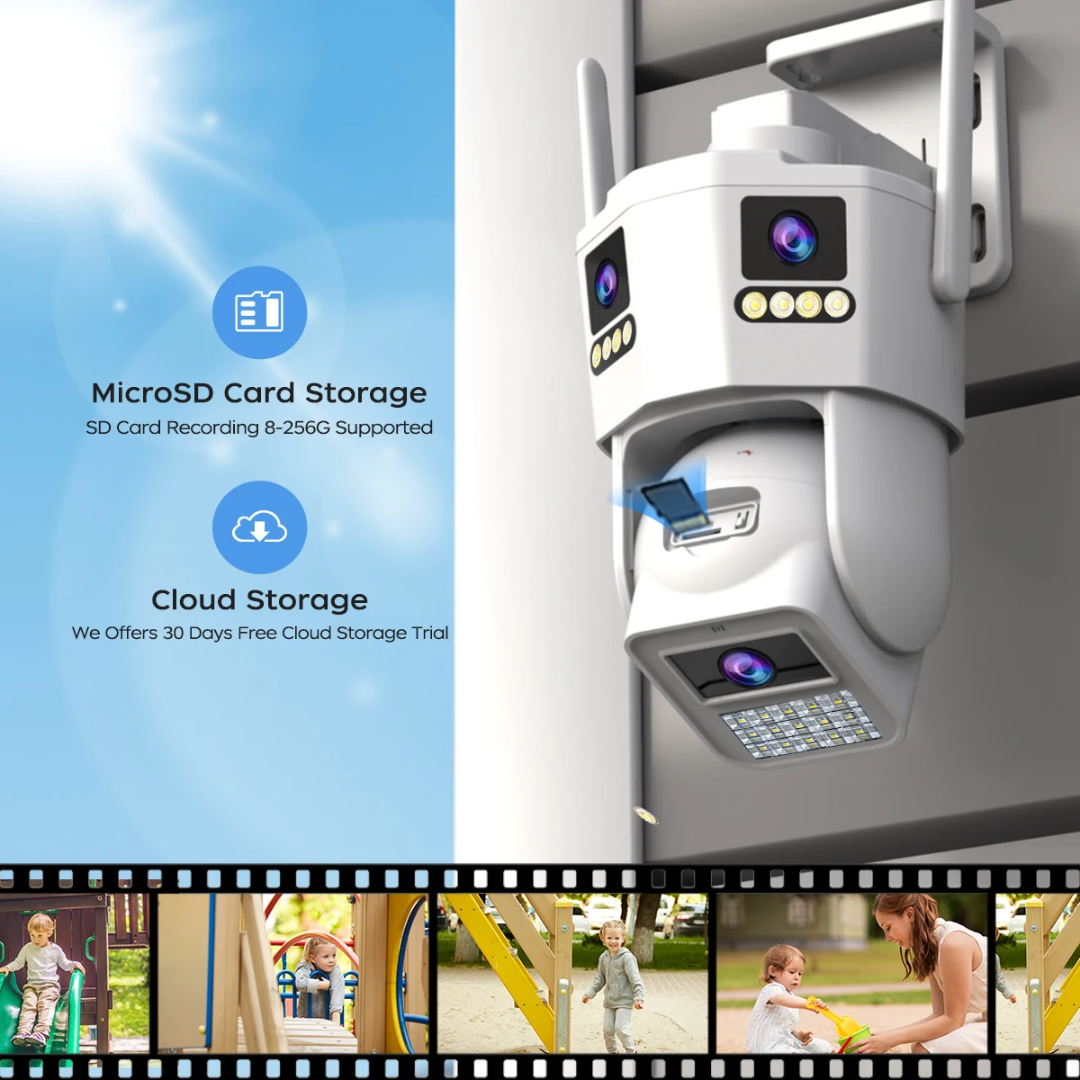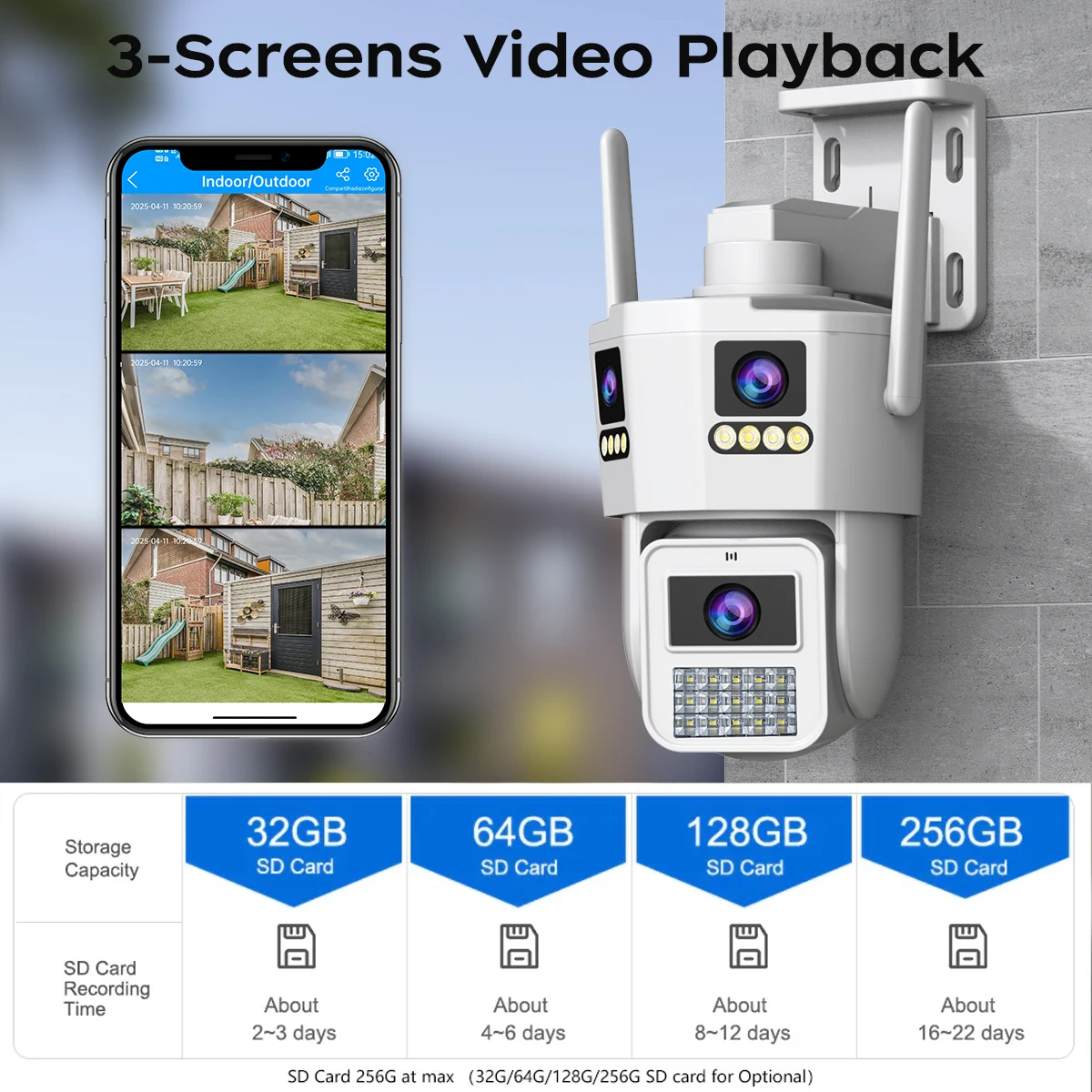 *Three lens and three screen design, Horizontal 355° + vertical 90° stereo coverage,allowing you to see more details and freely switch from the APP side to single-lens close-up/three-screen same screen;