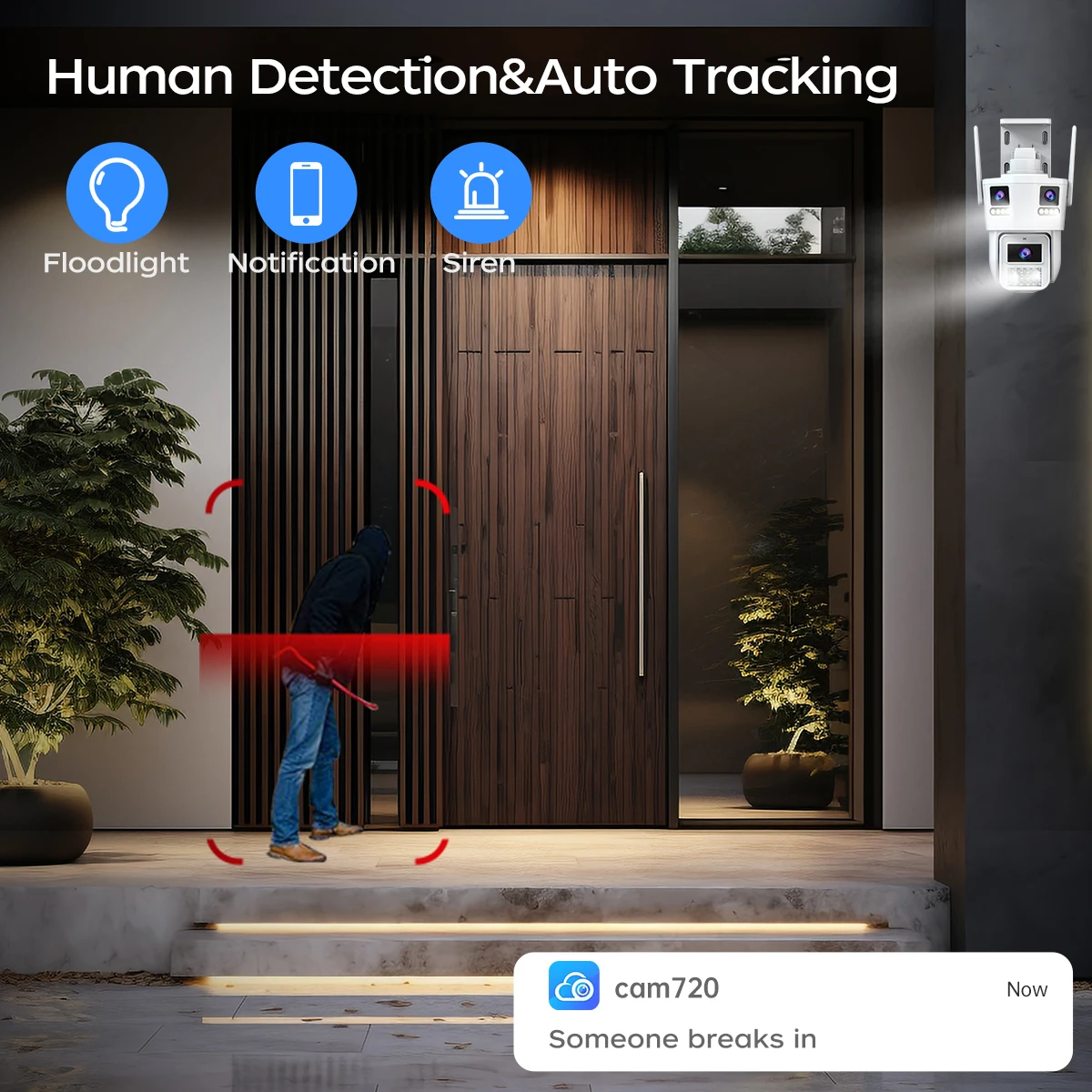 *Human Detection and Automatic tracking, human detection + mobile tracking + abnormal sound detection,real time push to protect your family safety;